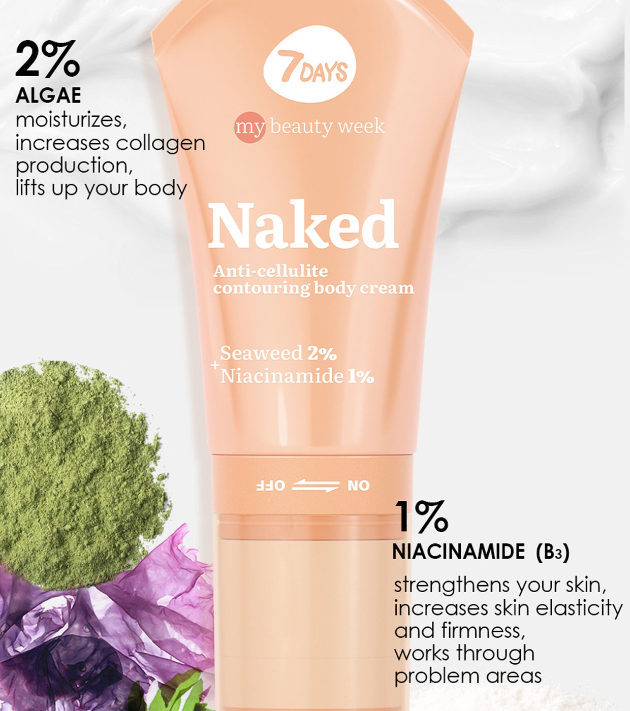 The seaweed in the formula hydrates the skin, helps increase collagen production and makes it more flexible and elastic. Niacinamide fights blemishes and strengthens the skin.