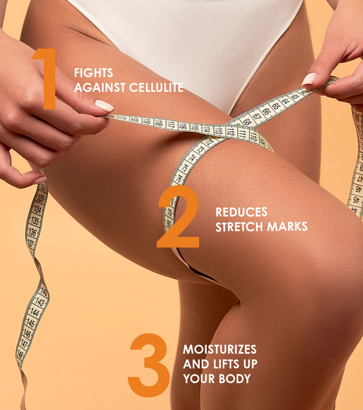 This cream works as an express lifting product, helping to eliminate fat accumulations and creating a more defined contour.