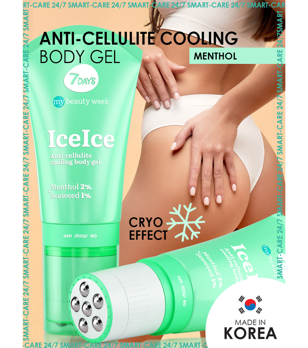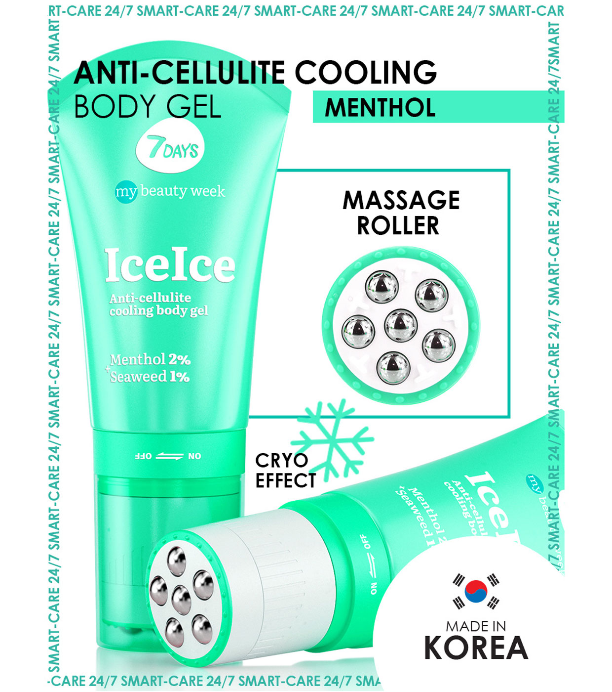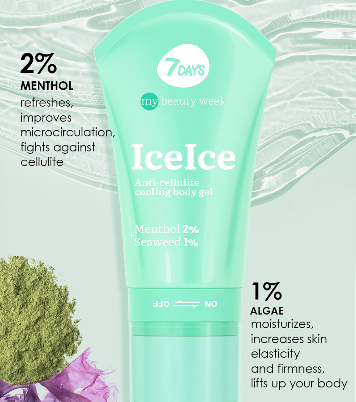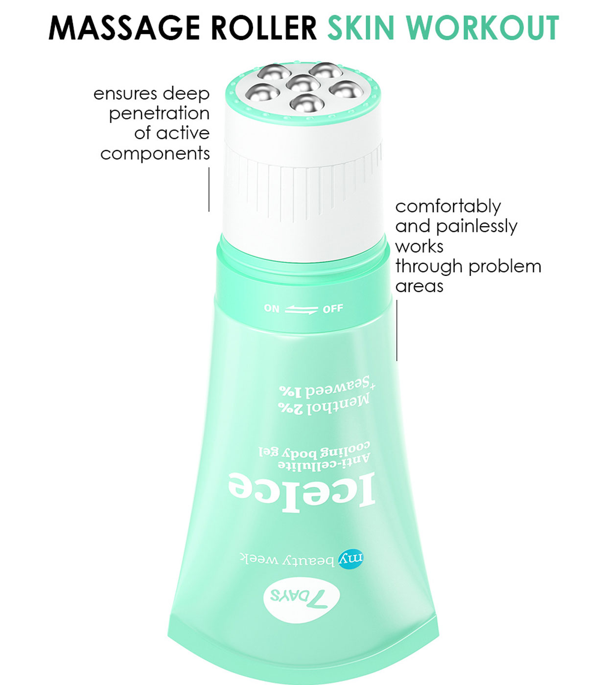 Discover the power of cryo-gel + massage roller 2en1 7DAYS ICEICE , a unique combination of 3D massage and Korean cosmetics with active ingredients such as menthol and algae.