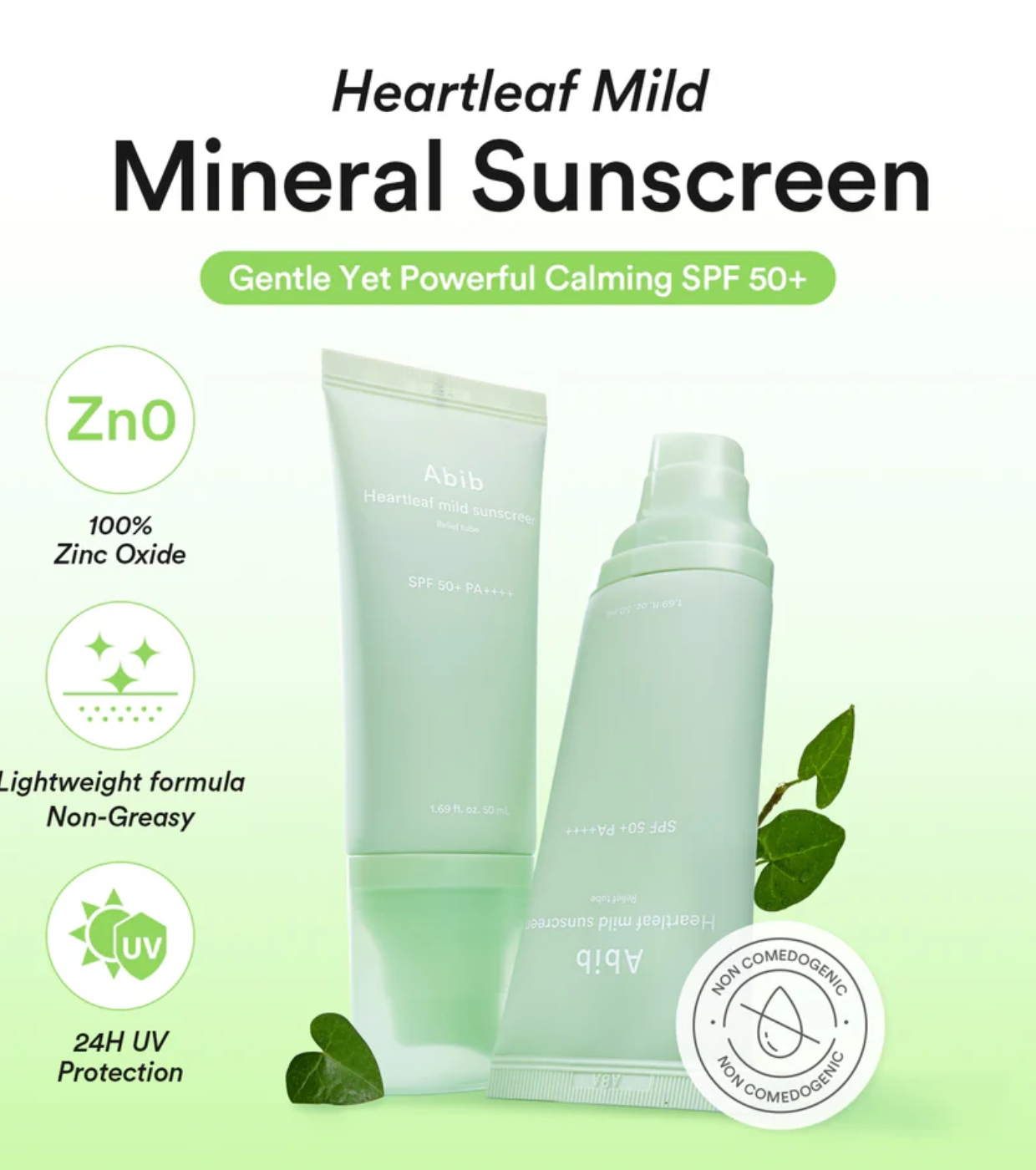 Heartleaf Mild SPF50+ PA++++ Heartleaf Mild SPF50+ PA++++ broad spectrum mineral sunscreen specially formulated for sensitive or redness-prone skin.