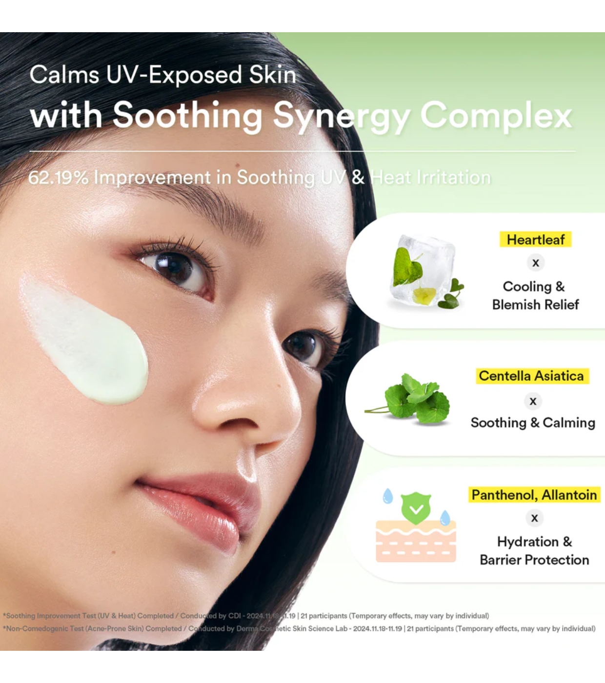 Its formula is enriched with Houttuynia Cordata (Heartleaf) and Centella Asiatica, ingredients known for their calming properties that help reduce inflammation, improve the appearance of redness and strengthen the skin barrier.