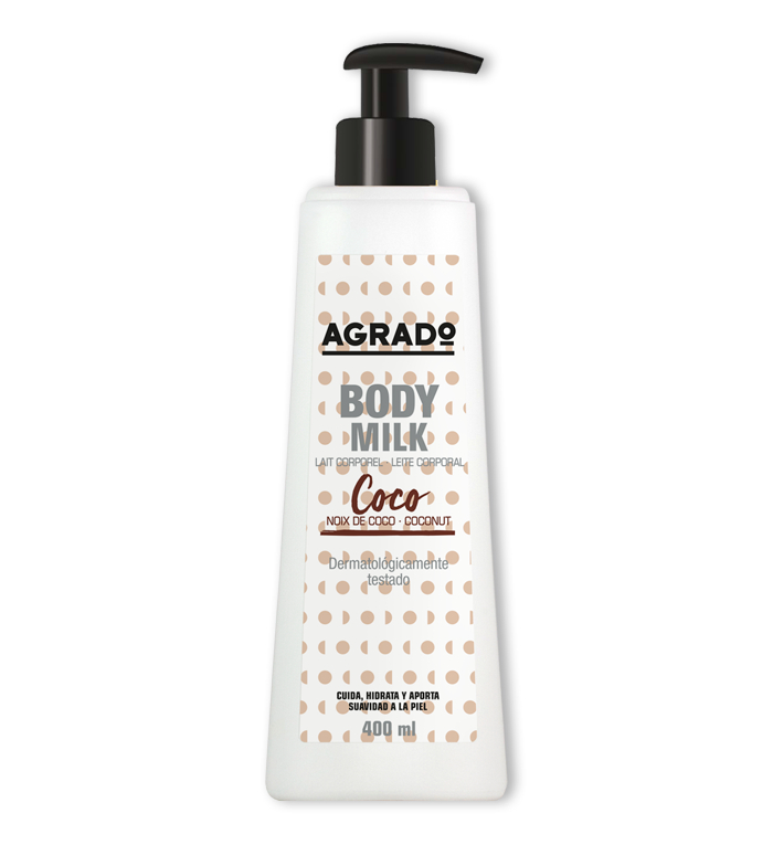 Agrado Cosmetics body milk with a soft coconut scent.