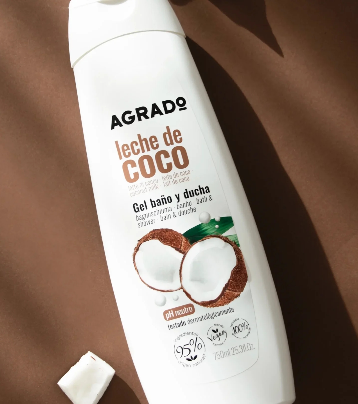 Agrado Cosmetic coconut milk bath and shower gel formulated to care for, cleanse and soften the skin.