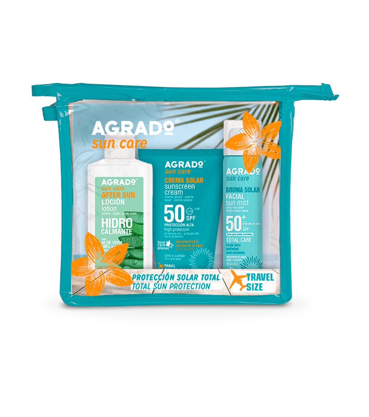 This toiletry bag includes three essential sun products for complete and effective protection under the sun.