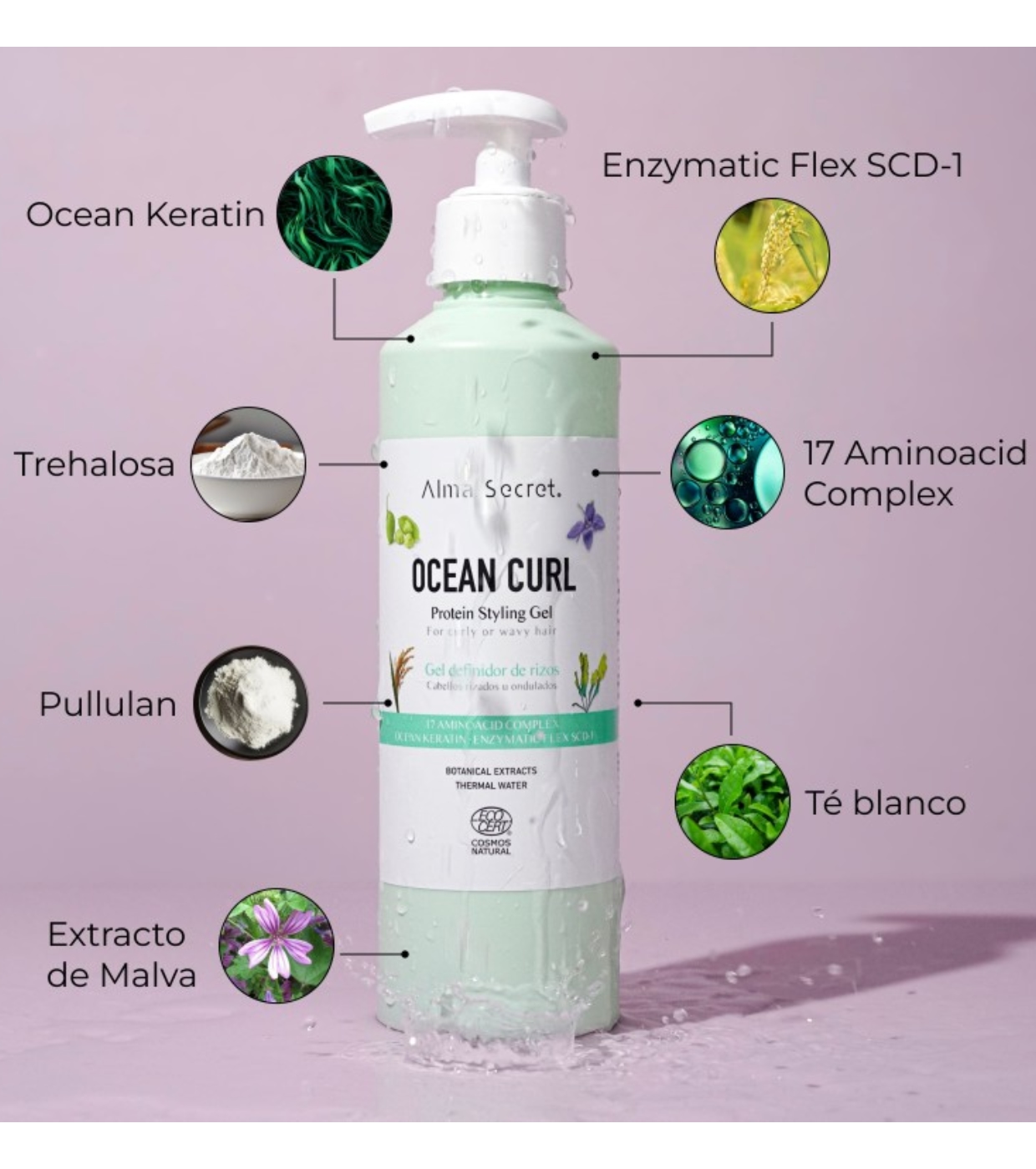 Ocean Curl by Alma Secret is a next-generation curl activating and defining gel that repairs, hydrates and shapes curly and wavy hair, providing elasticity, volume and natural movement without stiffness or weighing it down.