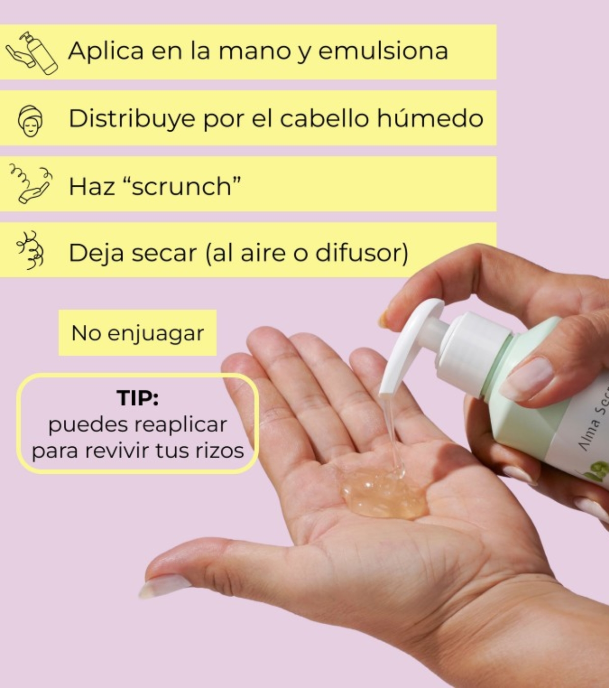 2. Scrunch from roots to ends to activate the curl and achieve long-lasting, natural hold.