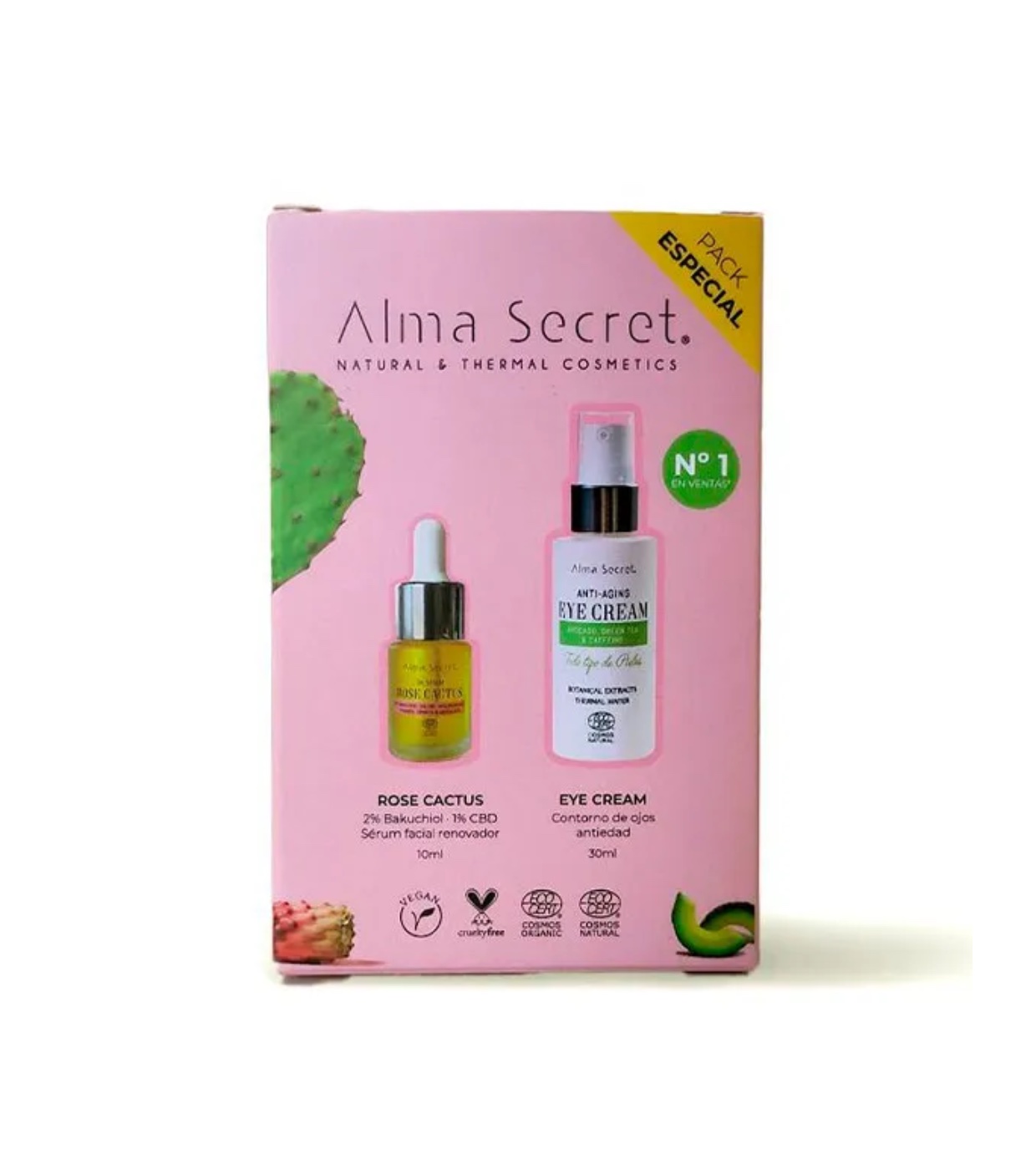 The ideal facial pack that every beautylover has been waiting for : The No. 1 eye contour and the facial serum Rose Cactus with 2% Bakuchiol will be the perfect combination to give your skin the luminosity, softness and firmness it deserves.