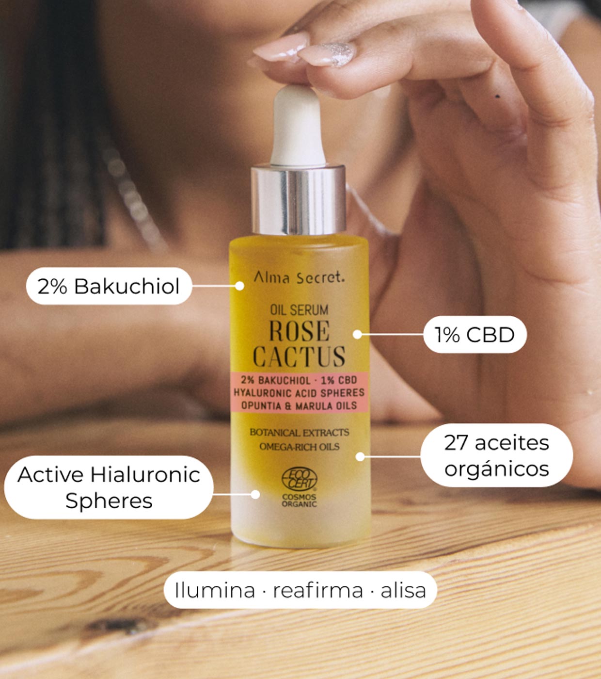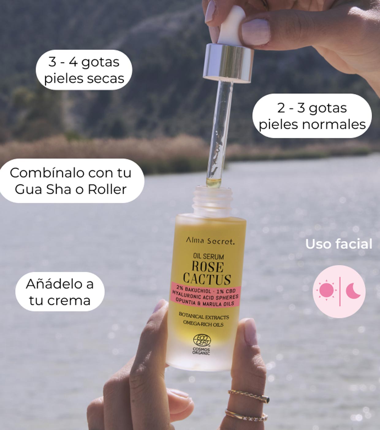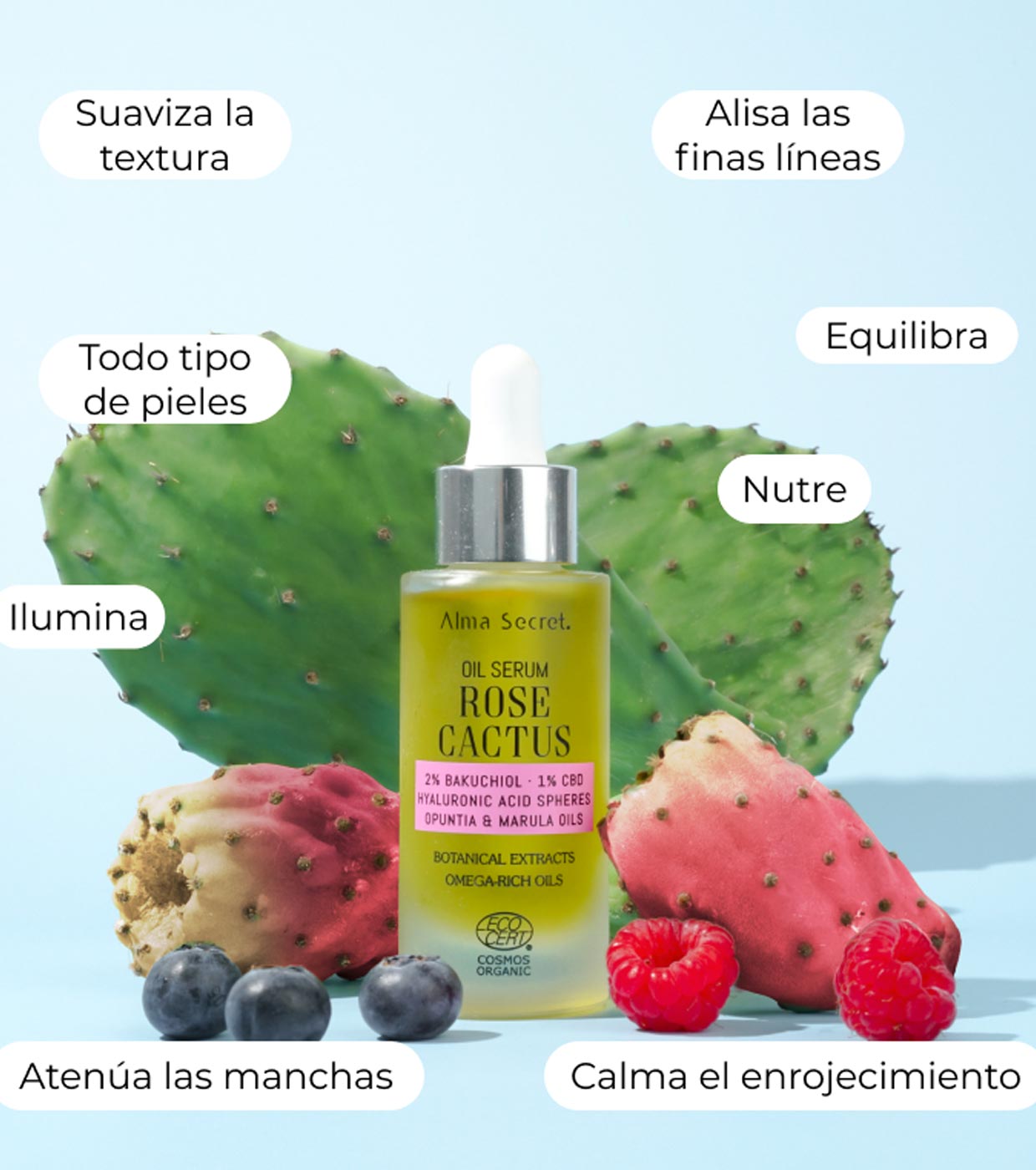Rose Cactus Oil by Alma Secret is a next-generation facial oil, suitable for all skin types, which acts by activating cell renewal, rebuilding and strengthening the skin barrier, improving its resistance to daily stress triggers. , revitalizing stressed skin and increasing its luminosity.