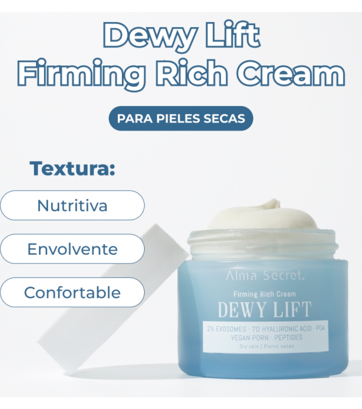 Dewy Lift by Alma Secret is a daily treatment cream that helps maintain the vitality and youth of the skin at any age.
