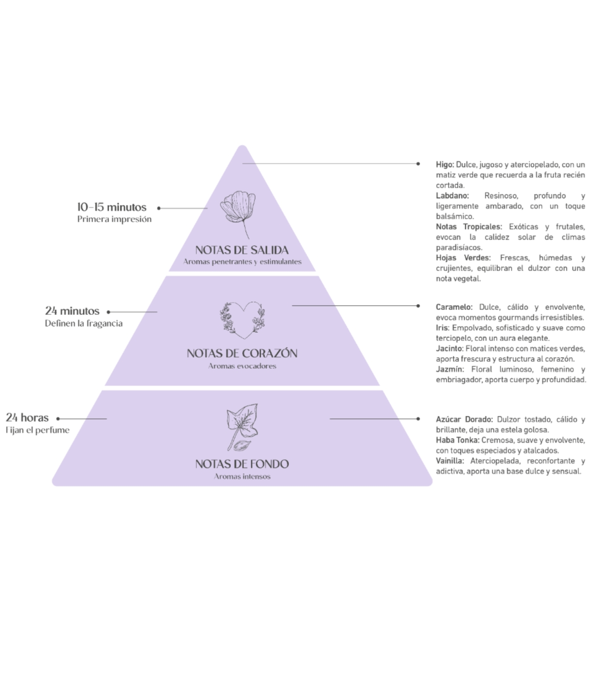The ripe, juicy, and velvety fig blends with a heart of caramel and floral notes, while the base of vanilla and tonka bean unfolds a creamy and addictive smoothness that invites you to relax and reconnect.