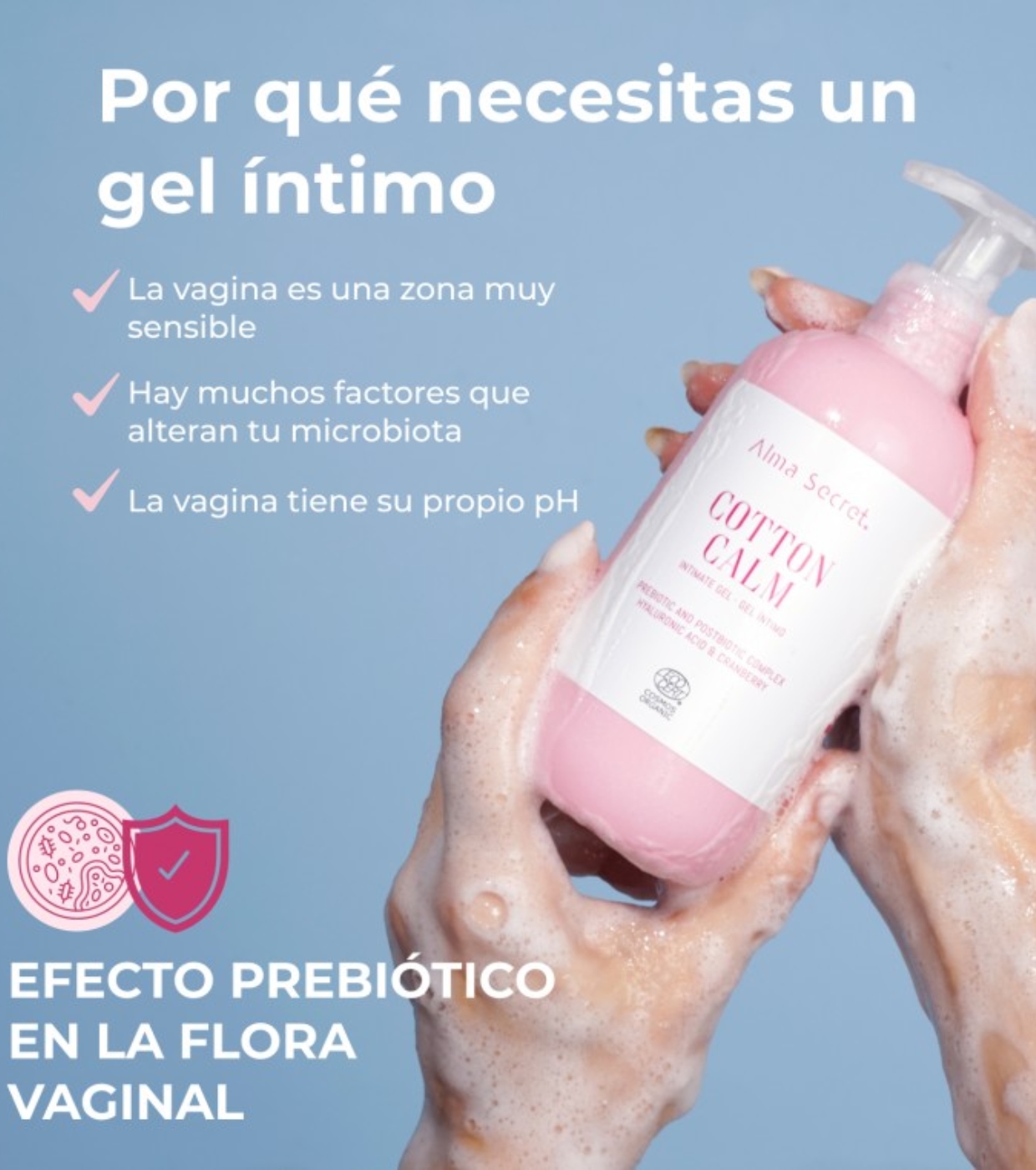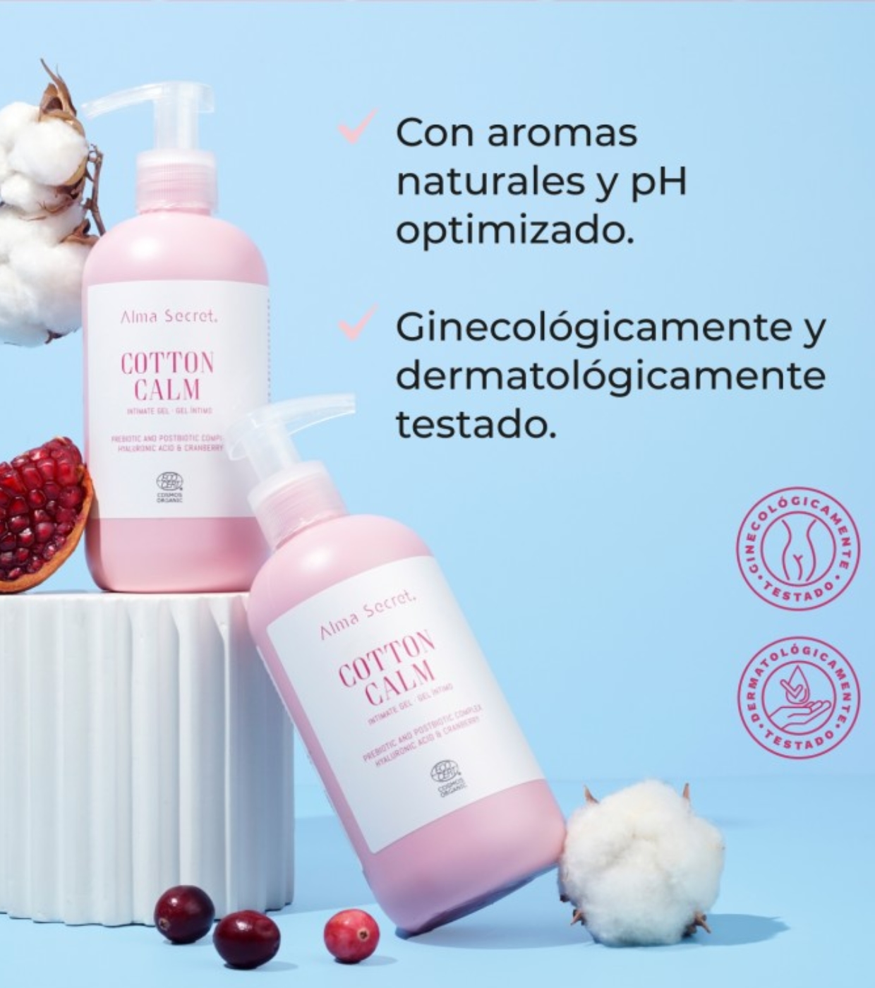 Cotton Calm by Alma Secret is a natural intimate gel with a creamy and silky texture that gently cleanses without altering intimate balance.