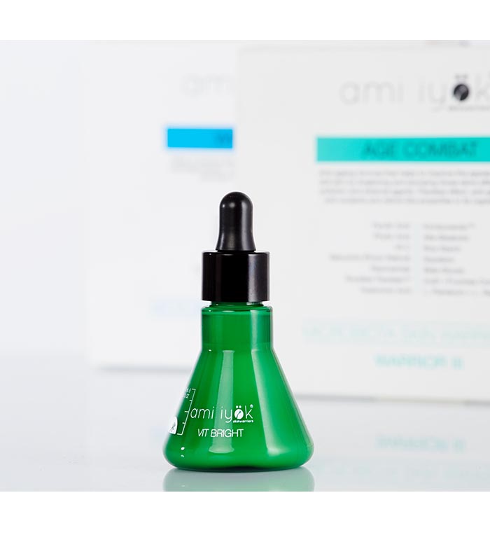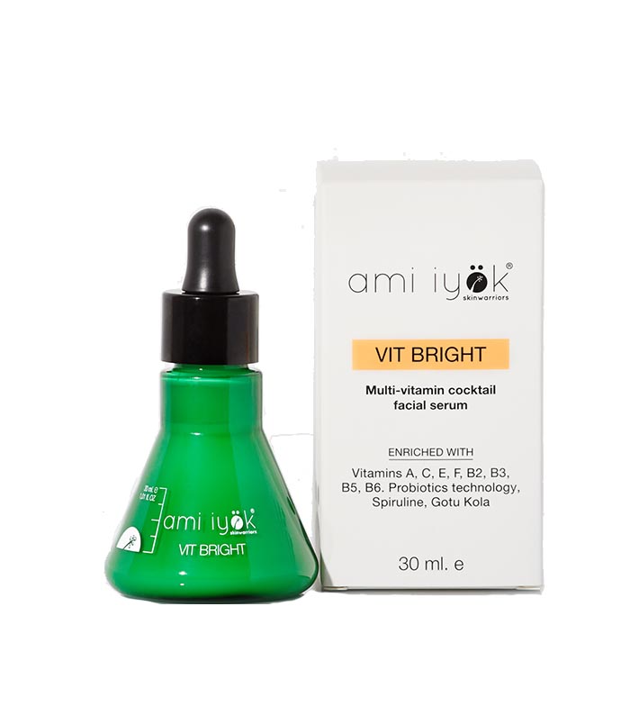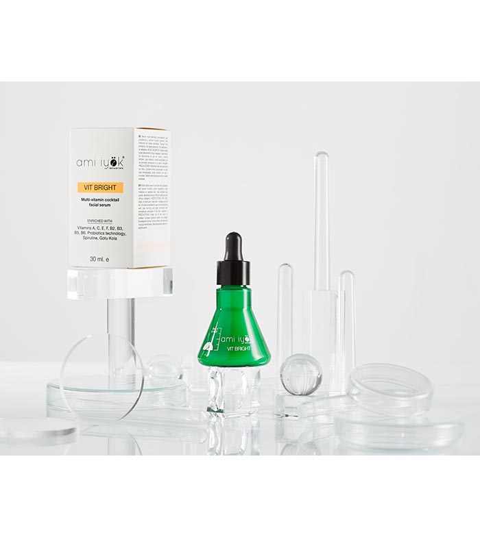 A serum with a cocktail of water-soluble and fat-soluble vitamins (VIT A, VIT C, VIT E, F, B2, B3, B5, B6) in an inverse emulsion to allow them to be combined in a single formula at optimal concentrations and a PH totally respectful with the most sensitive skins.