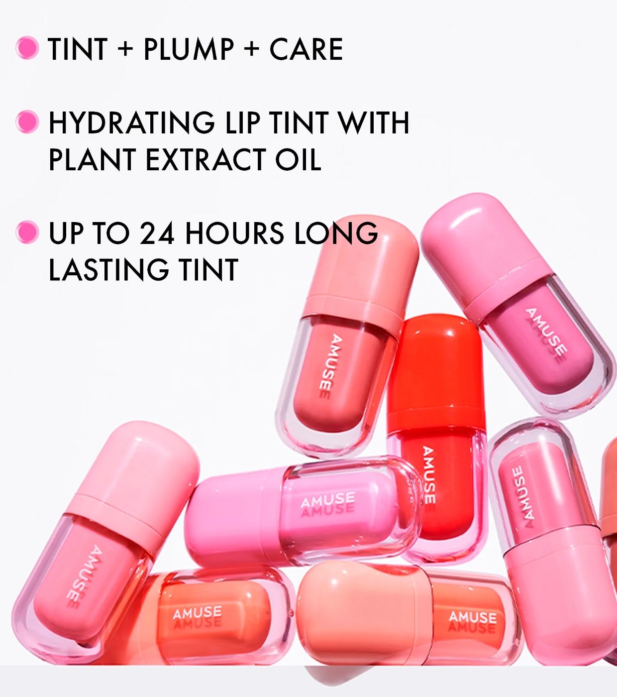 Bebe Tint's AMUSE is a vegan lip tint that combines vibrant color, plumping effect, and hydration in one step.