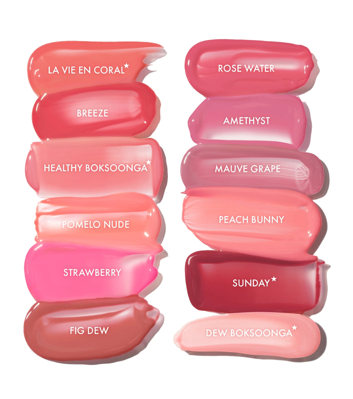 Dew Tint's AMUSE is a lightweight, water-based vegan lip tint that provides a juicy, shiny, and natural finish.