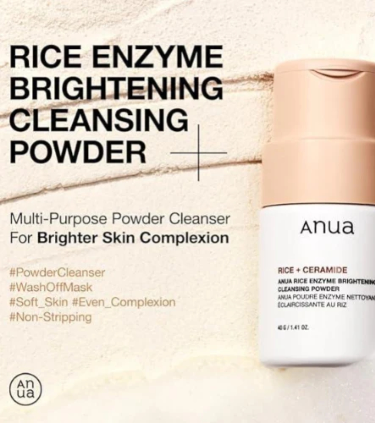 Rice Enzyme Brightening Cleansing Powder's Anua is an innovative facial cleansing product as it combines gentle exfoliation and skin care in one step.