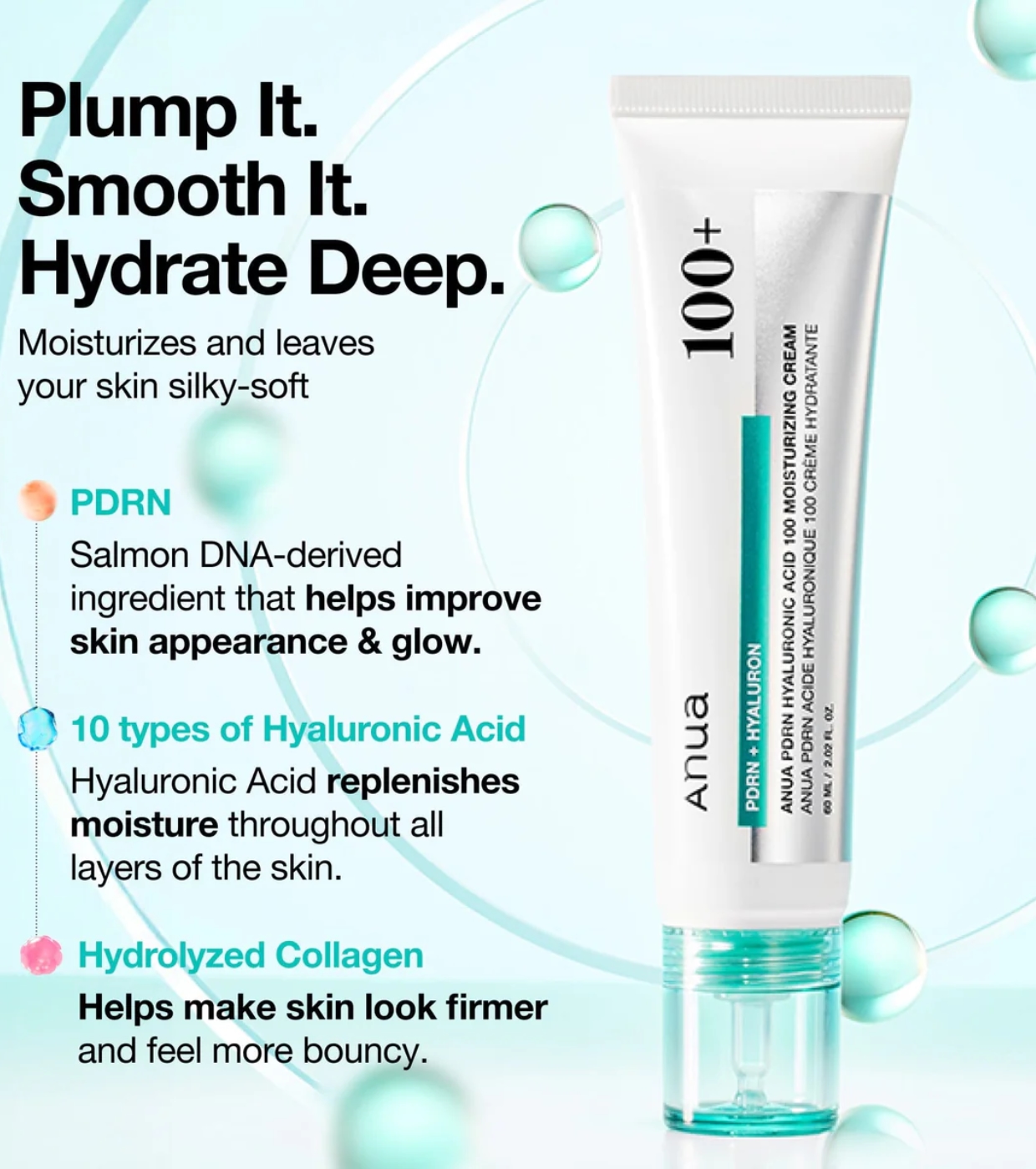 Water, Squalane, Glycerin, Niacinamide, Pentylene Glycol, 1,2-Hexanediol, Sodium DNA, Hydrolyzed Collagen, Sodium Hyaluronate, Melia Azadirachta Leaf Extract, Hydrolyzed Hyaluronic Acid, Melia Azadirachta Flower Extract, Coccinia Indica Fruit Extract, Hyaluronic Acid, Aloe Barbadensis Flower Extract, Solanum Melongena (Eggplant) Fruit Extract, Ocimum Sanctum Leaf Extract, Corallina Officinalis Extract, Curcuma Longa (Turmeric) Root Extract, Centella Asiatica Leaf Extract, Diphenylsiloxy Phenyl Trimethicone, PCA Dimethicone, Butylene Glycol, Propanediol, Ammonium Acryloyldimethyltaurate/VP Copolymer, Diglycerin, Hydroxyethyl Acrylate/Sodium Acryloyldimethyl Taurate Copolymer, Acrylates/C10-30 Alkyl Acrylate Crosspolymer, C12-20 Alkyl Glucoside, Methylpropanediol, Ethylhexylglycerin, Adenosine, Sodium Phytate, Aminomethyl Propanediol, PVM/MA Copolymer, Madecassoside, C12-13 Alketh-9, Dimethylsilanol Hyaluronate, Hydrolyzed Sodium Hyaluronate, Asiaticoside, Potassium Hyaluronate, Hydroxypropyltrimonium Hyaluronate, Sodium Hyaluronate Crosspolymer, Sodium Hyaluronate Dimethylsilanol, Sodium Acetylated Hyaluronate, Behenyl Alcohol, C14-22 Alcohols, Carbomer