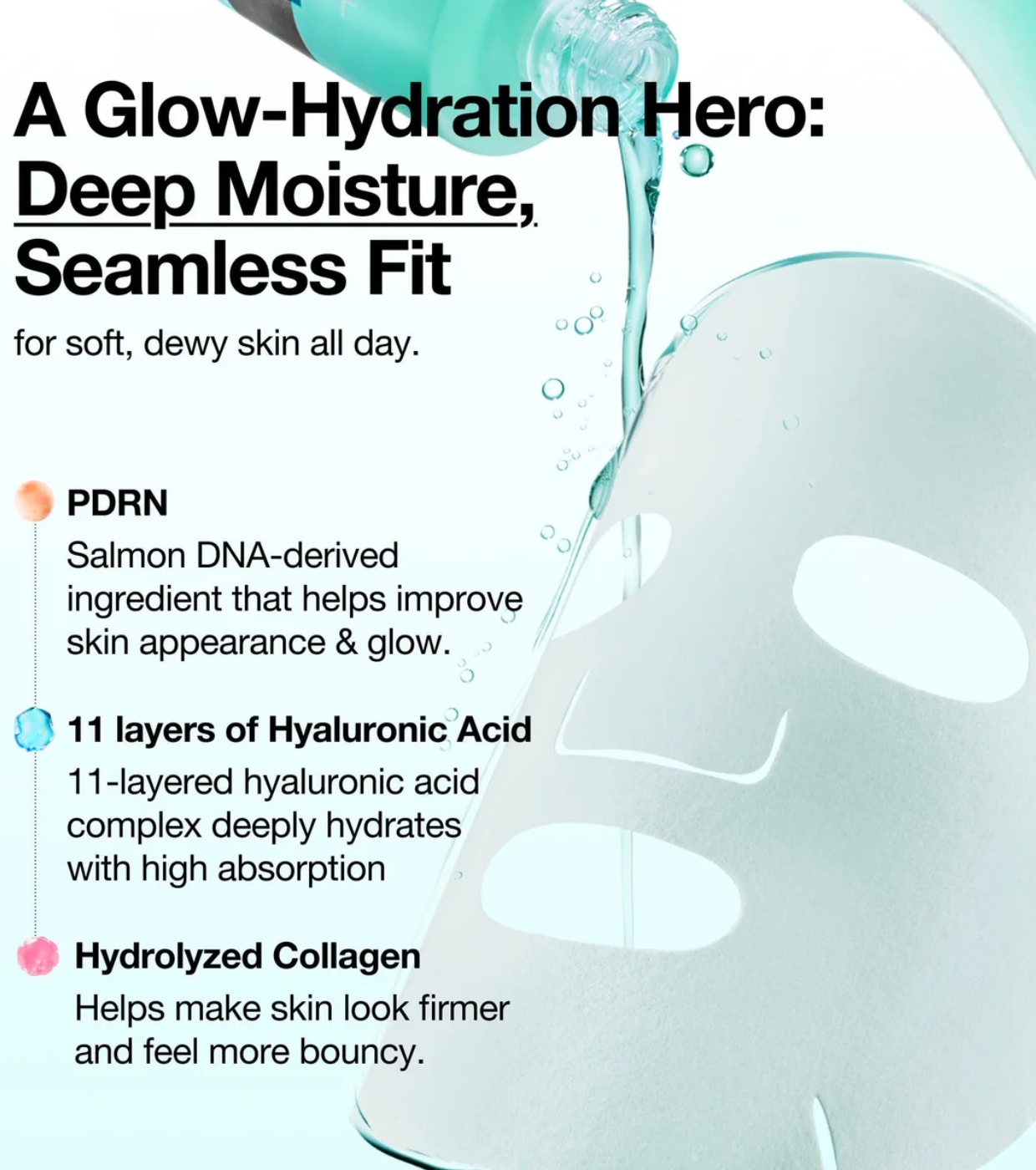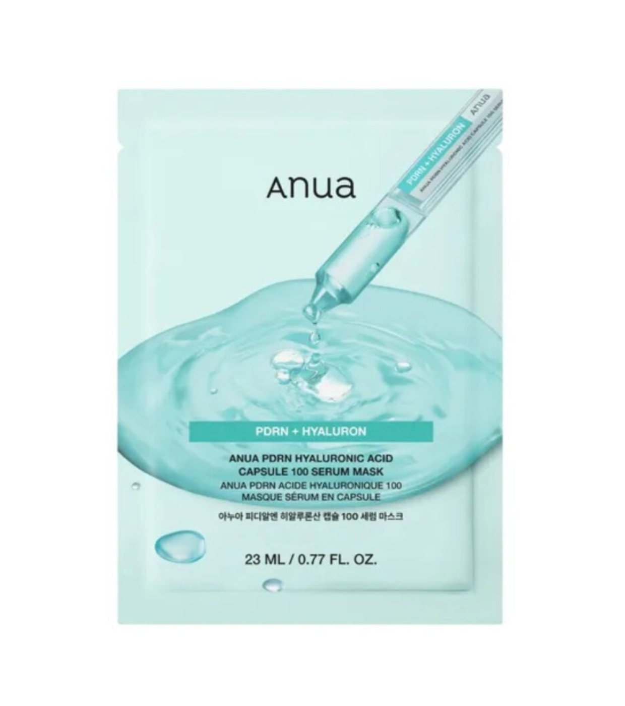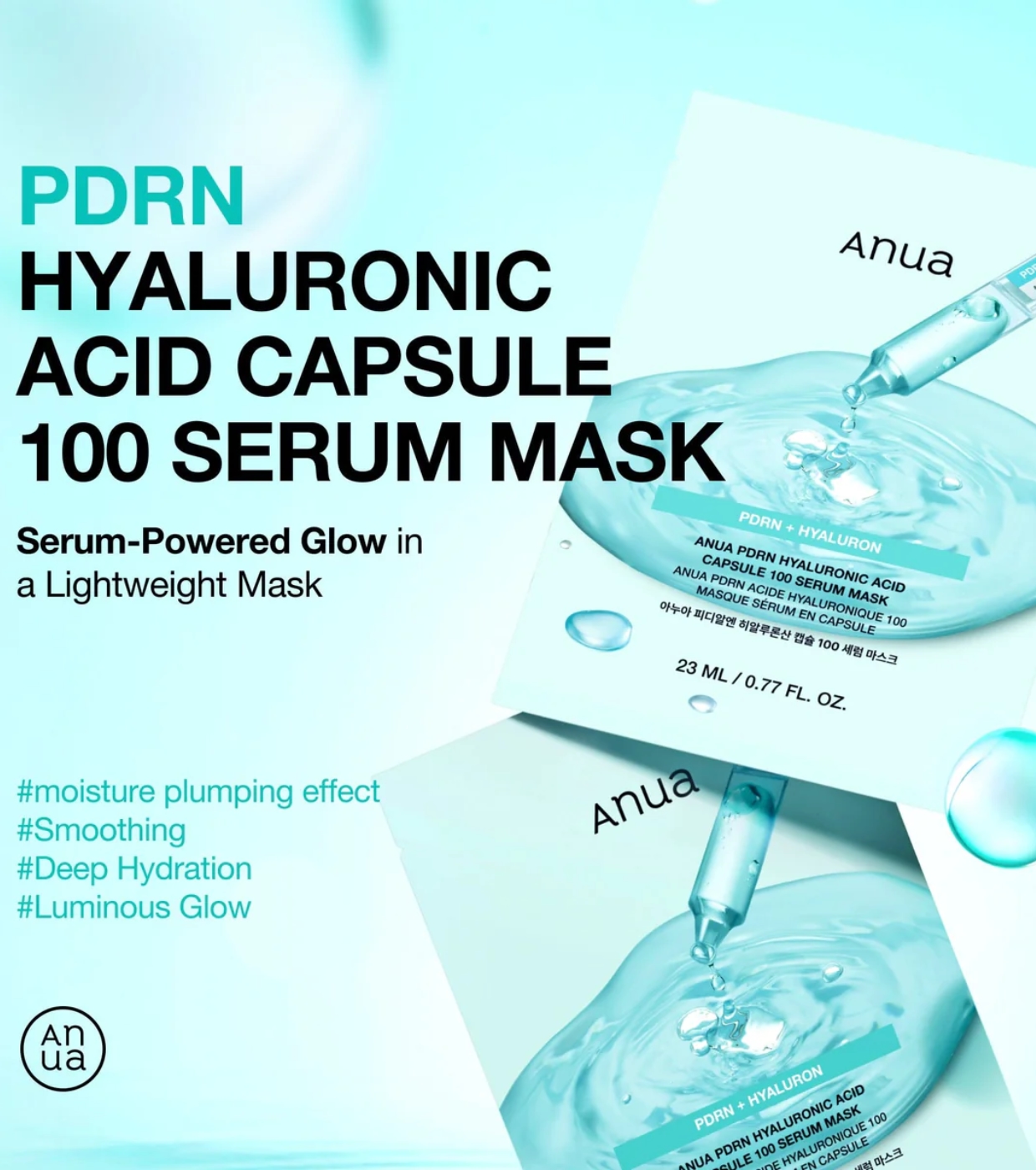 The Anua PDRN Hyaluronic Acid Capsule 100 Serum Mask is an ultra-thin hydrogel face mask designed to provide deep hydration, epidermal regeneration and immediate radiance.