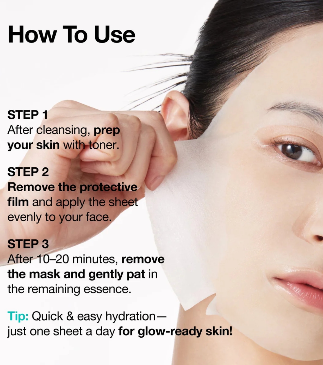 Thanks to its ultra-thin hydrogel, the mask adheres perfectly to the face, allowing for maximum delivery of active ingredients. Results are visible from the first application.