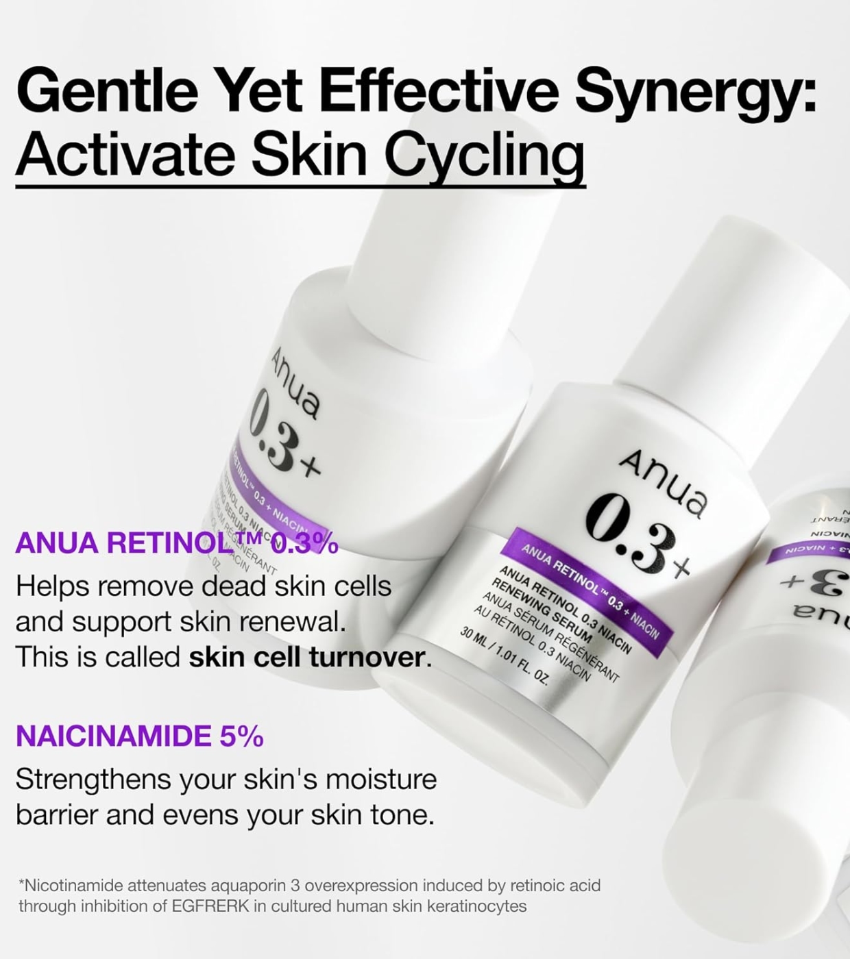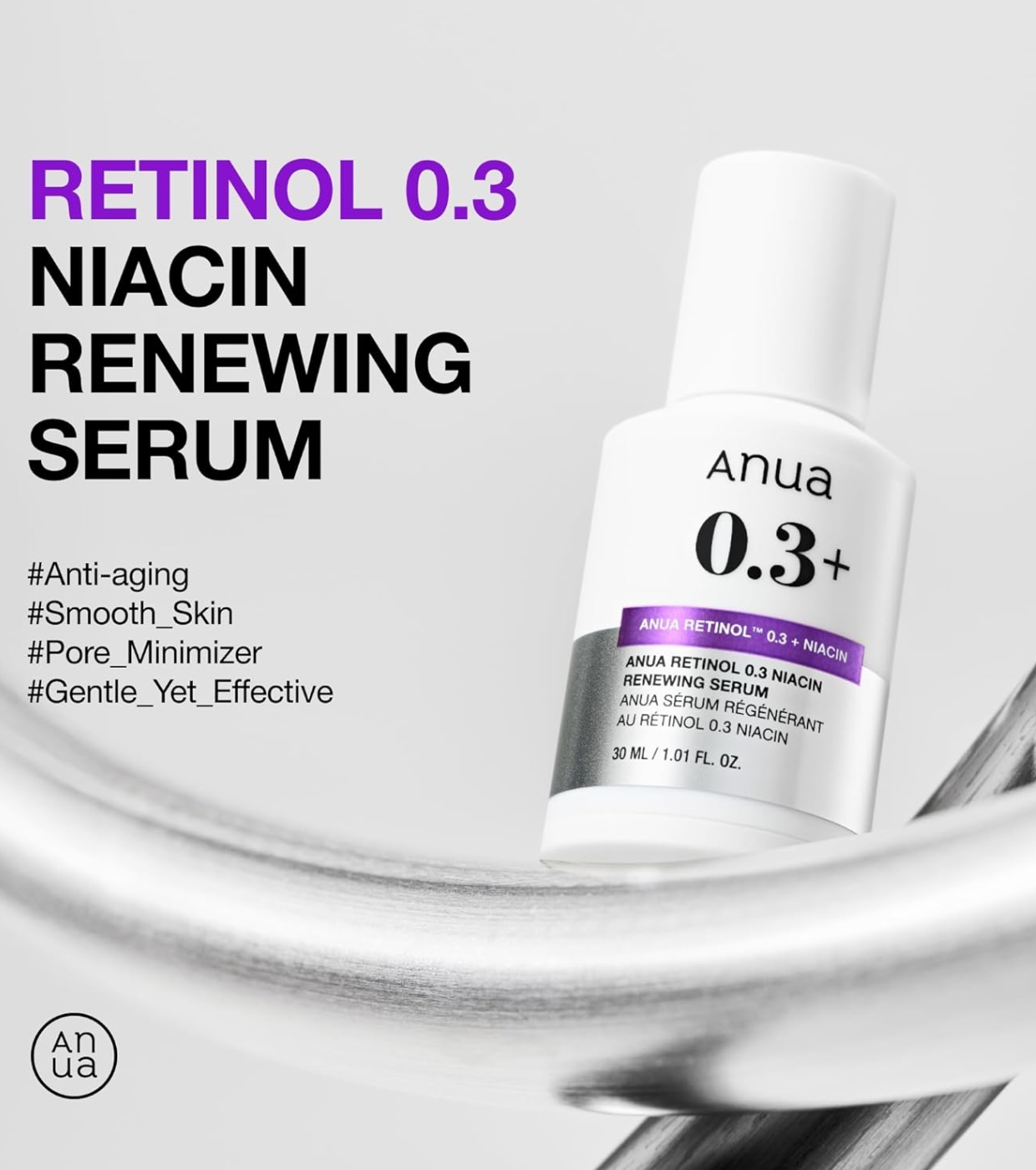 Anua 's 0.3% Retinol + Niacinamide Renewing Night Serum is ideal for those looking to treat signs of aging, hyperpigmentation, and uneven skin texture without causing irritation.