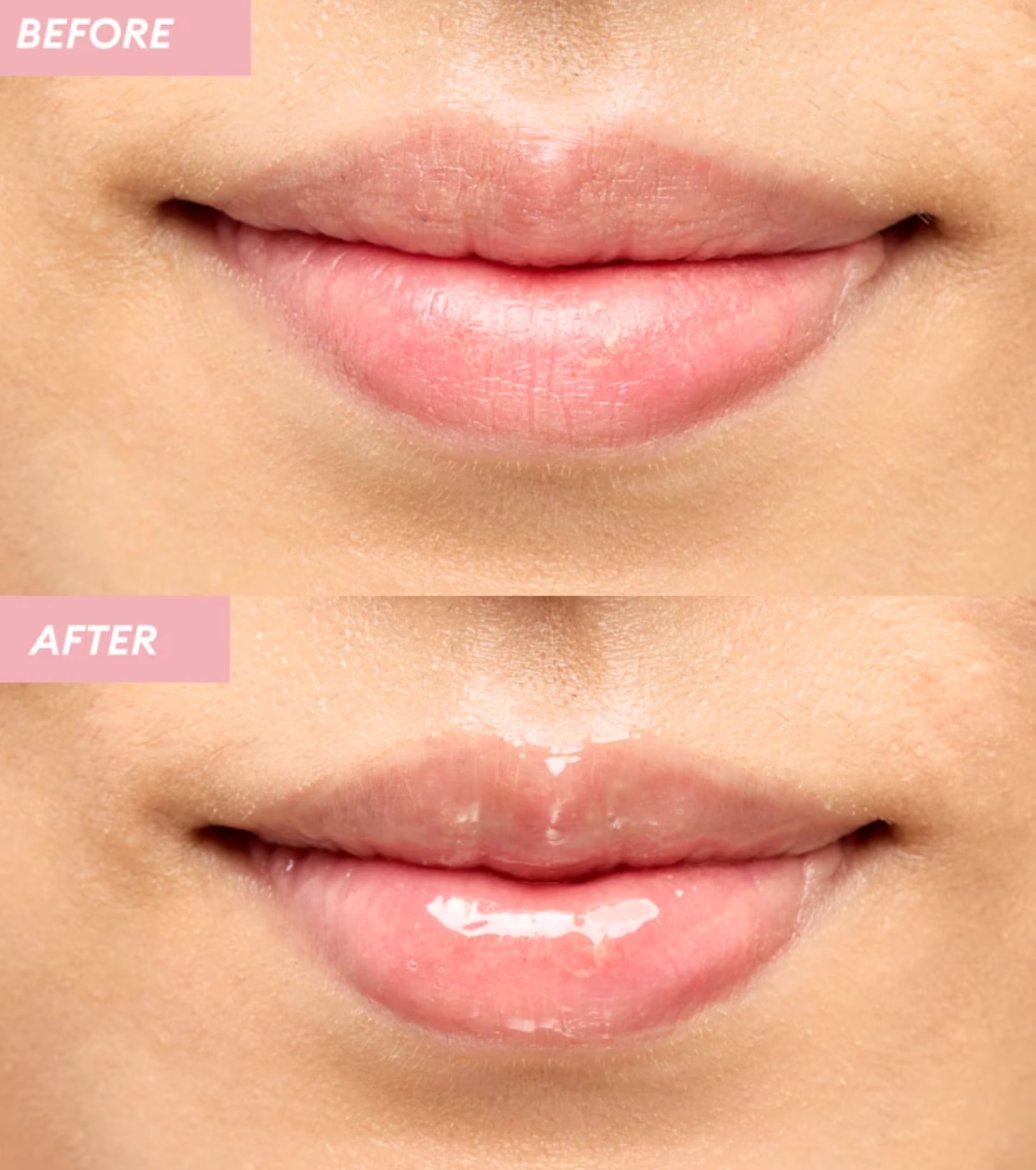 Its thick oil formula creates a protective layer that locks in moisture and adds natural volume, keeping lips firm and radiant all day long.