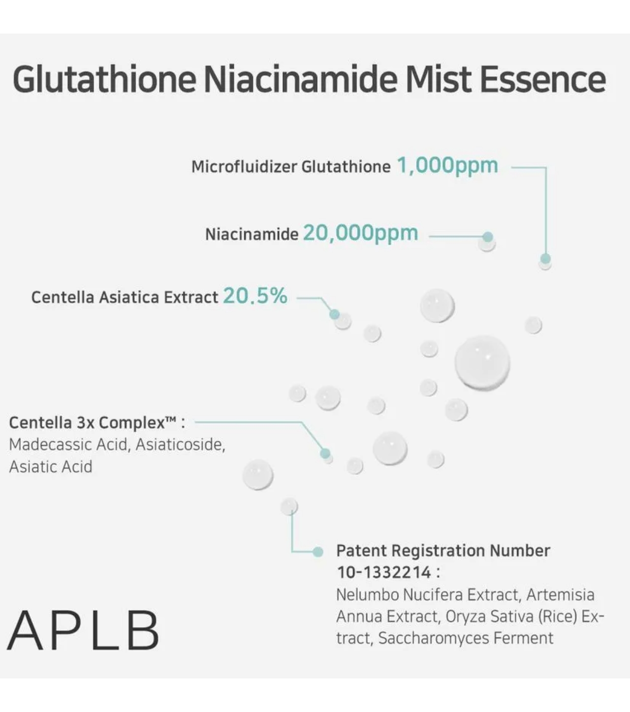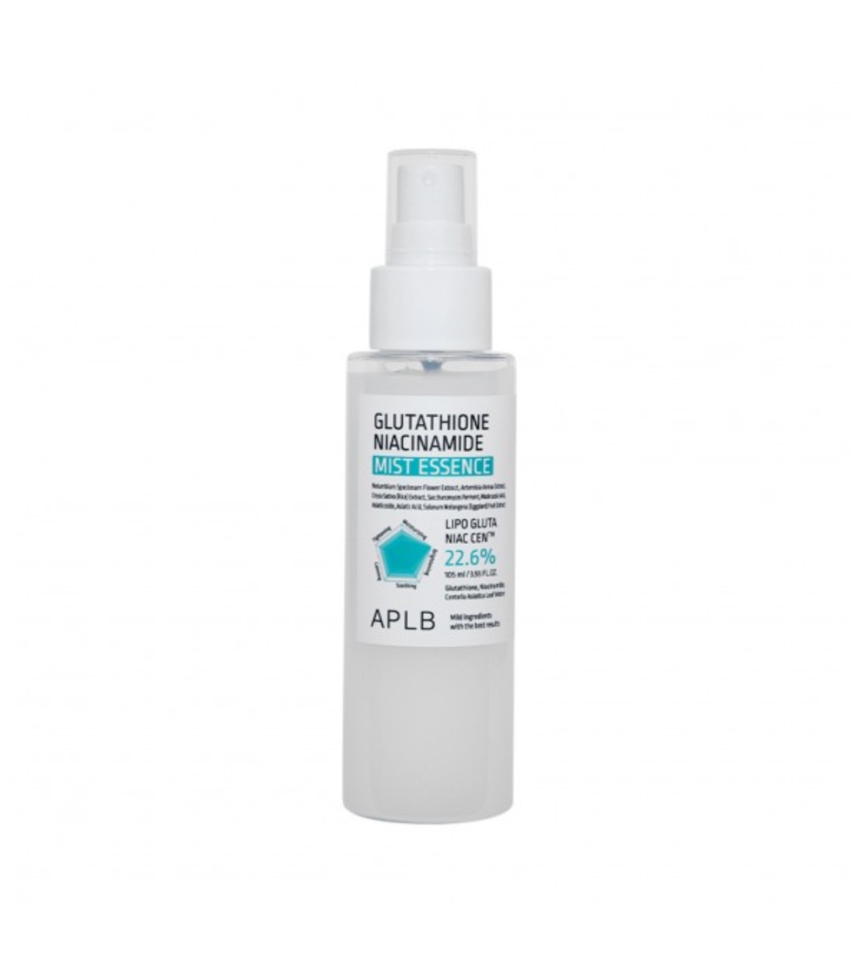 Glutathione Niacinamide Mist Essence's APLB is a facial essence in mist format designed to hydrate, soothe and illuminate the skin at any time of the day.