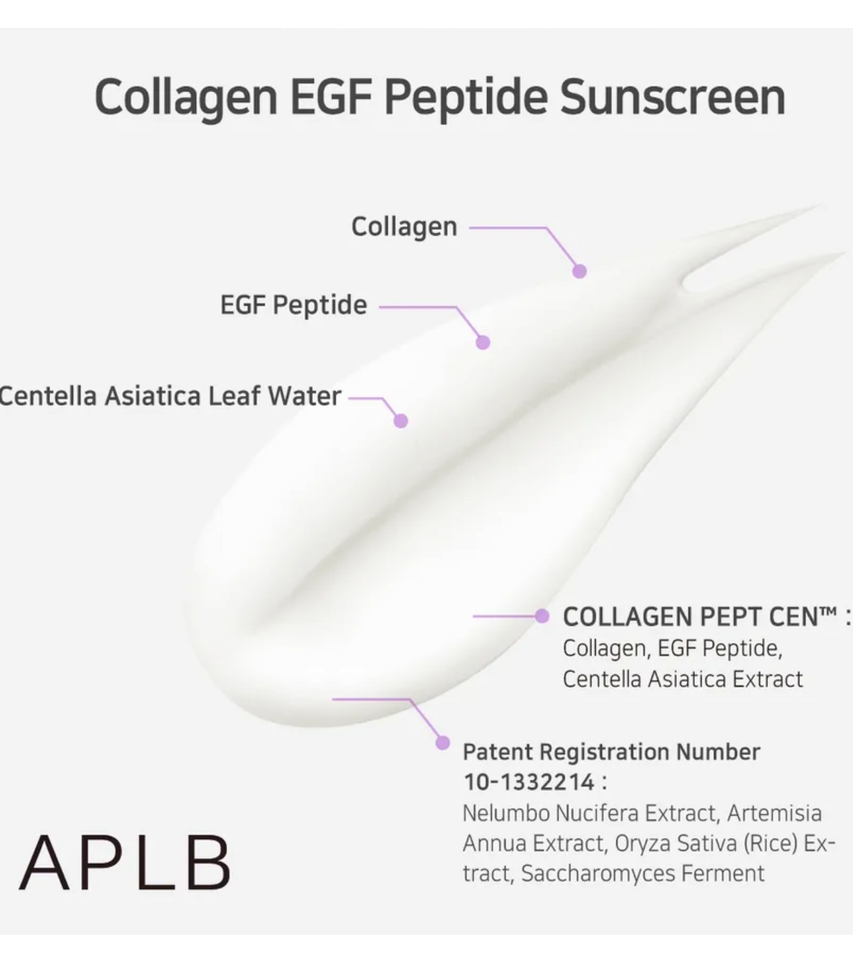 Collagen EGF Peptide Sunscreen Collagen EGF Peptide Sunscreen is a multi-function sunscreen that offers high protection SPF50+ PA++++ against UVA and UVB rays, while moisturizing, firming and protecting the skin from premature aging.