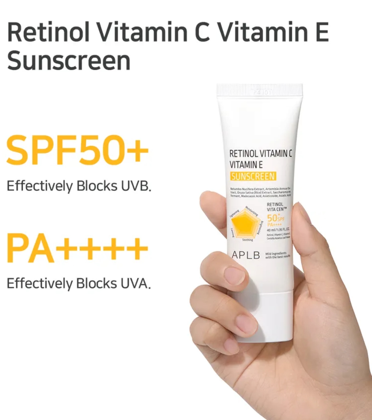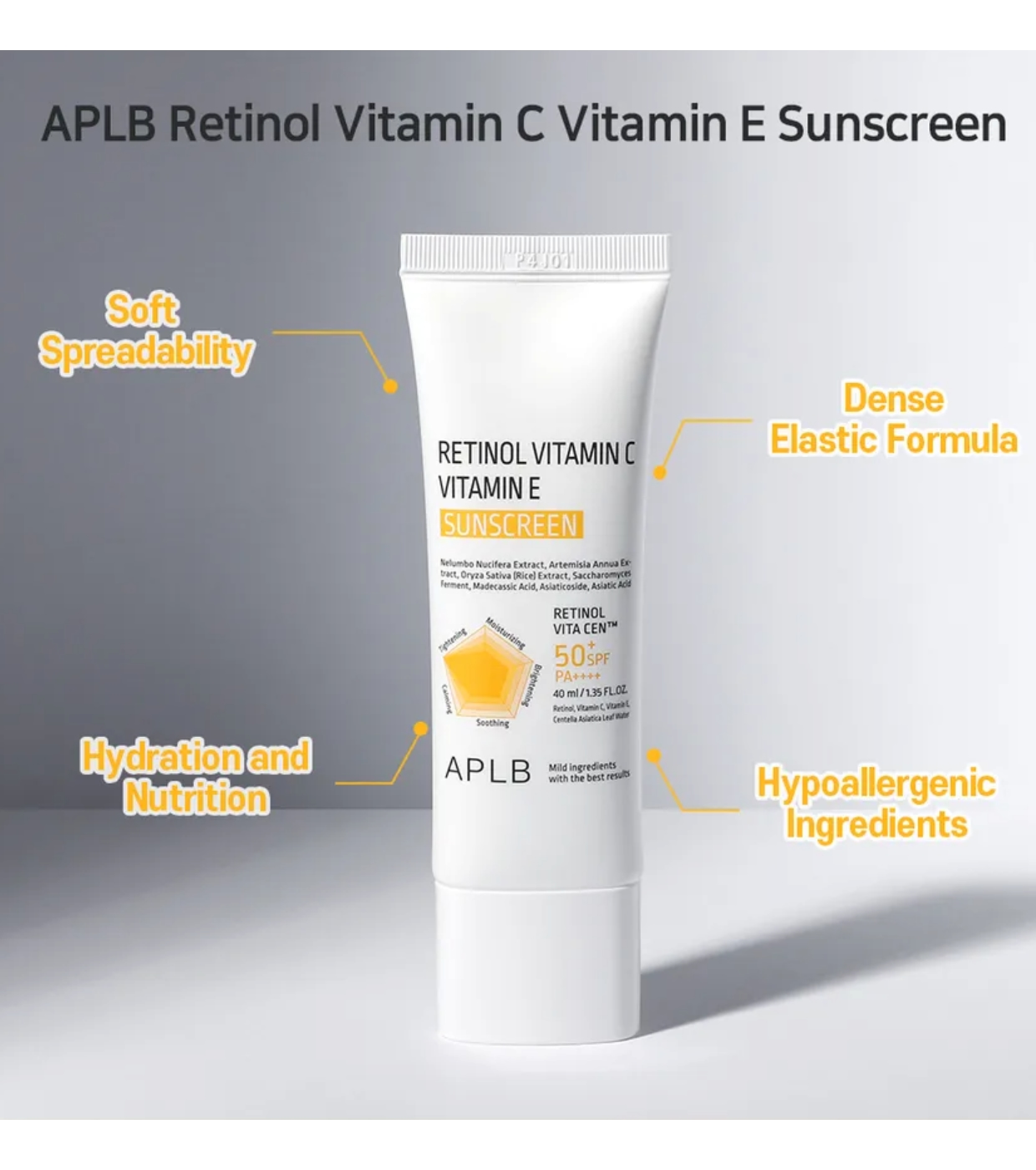 The Retinol Vitamin C Vitamin E Sunscreen SPF50+ PA++++ from APLB is much more than just a sunscreen: it's a complete anti-aging treatment that combines high sun protection with antioxidant and regenerating ingredients for younger, brighter, and healthier skin.