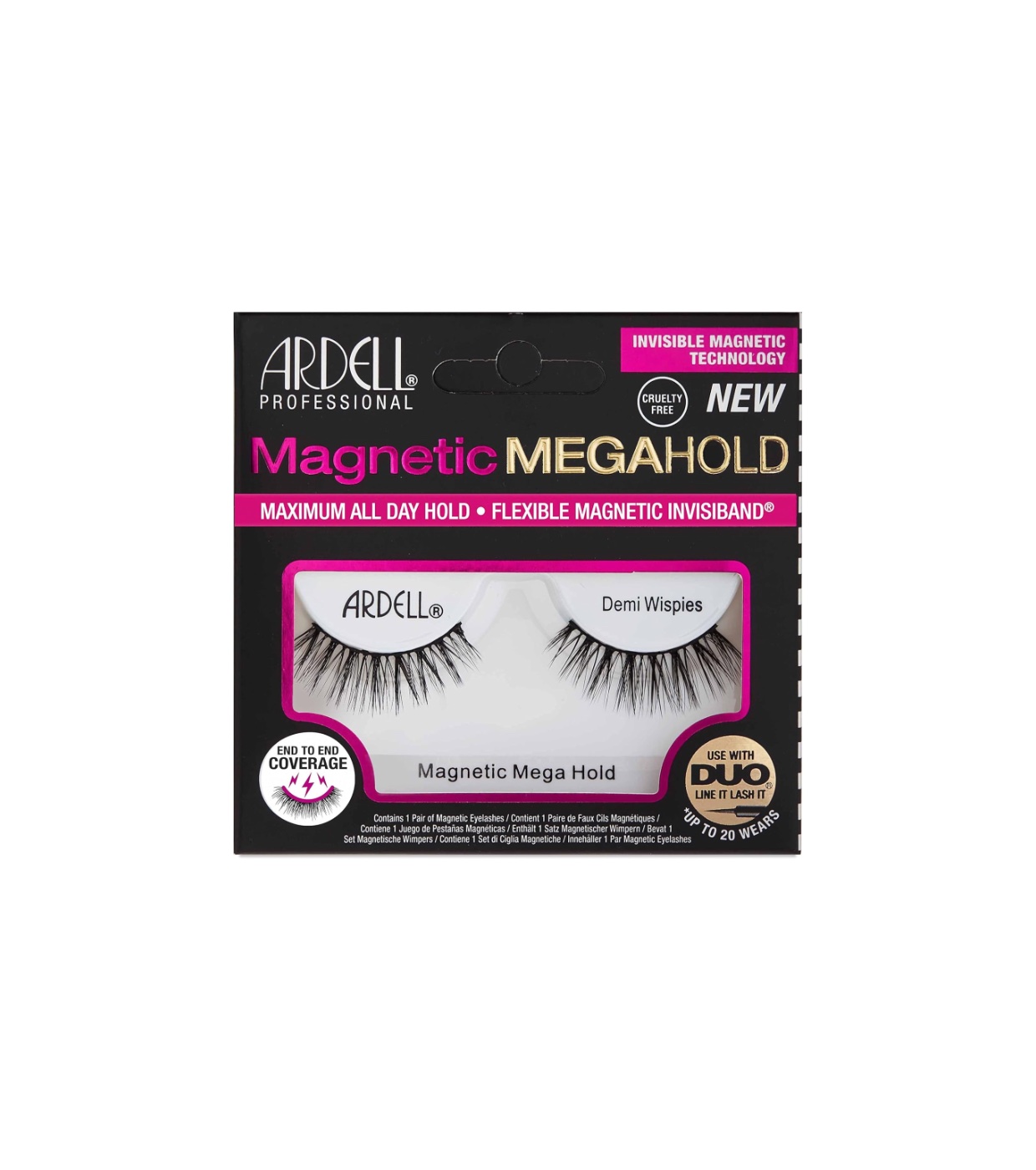 Magnetic lashes are reinvented with Ardell Magnetic MegaHoldLash Demi Wispies , designed with end-to-end magnetic technology that provides an ultra-secure hold and a natural, flawless finish without the need for glue.