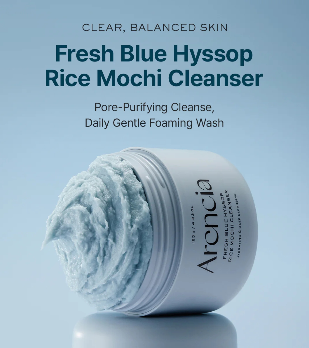The Fresh Blue Hyssop Rice Mochi cleanser from Arencia is a clarifying facial cleanser formulated to purify pores, remove excess sebum and soothe blemishes without drying out the skin.
