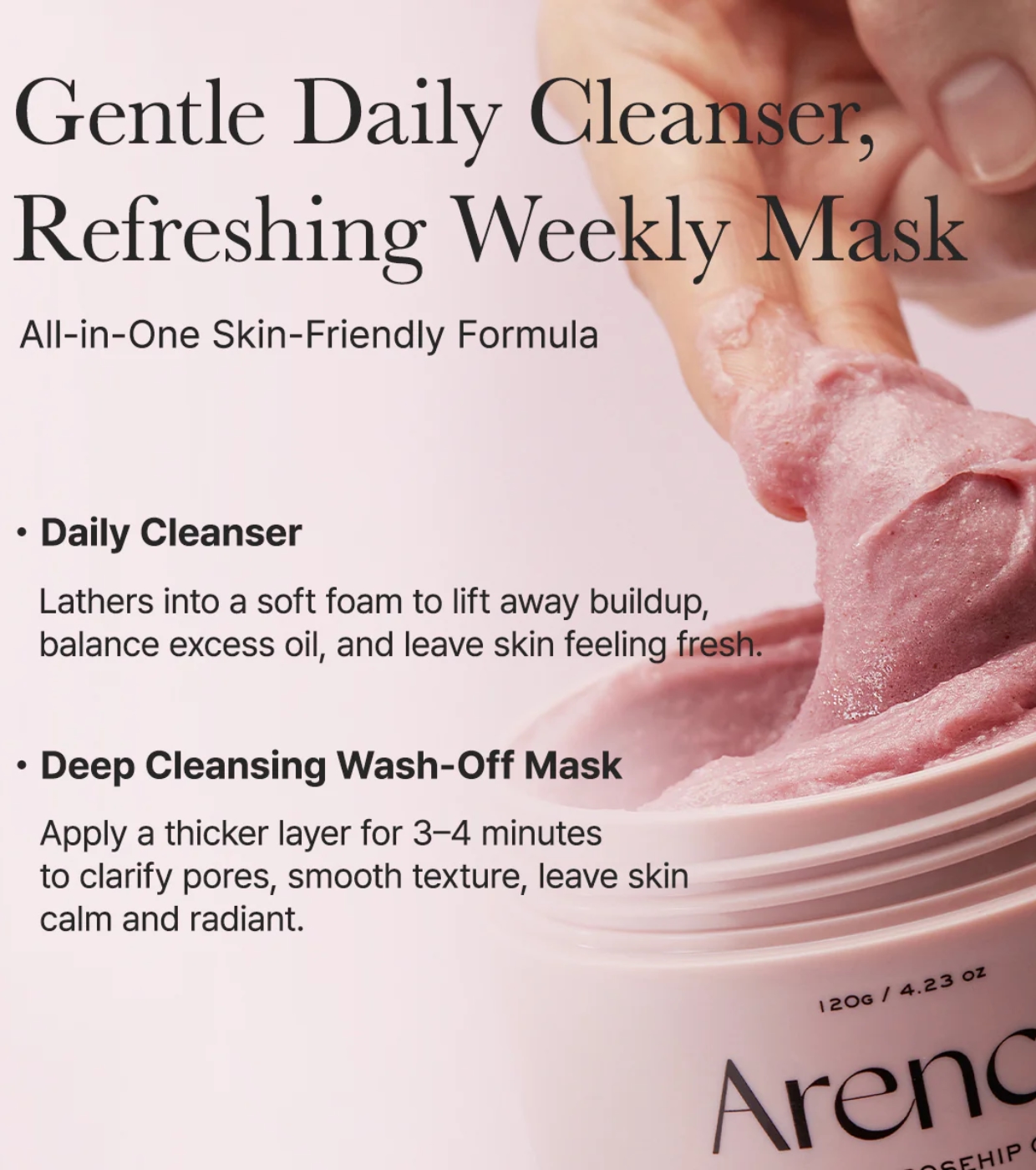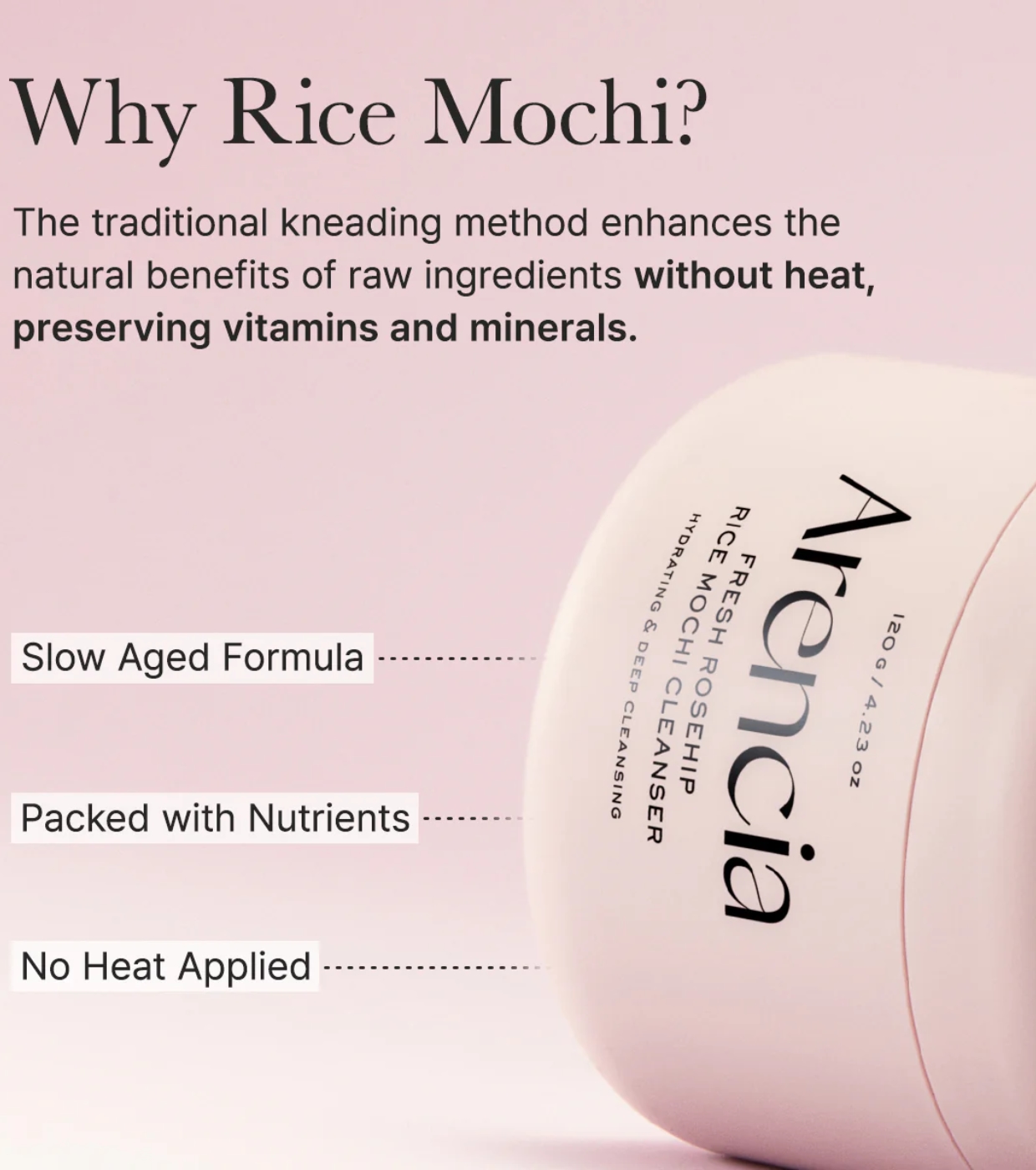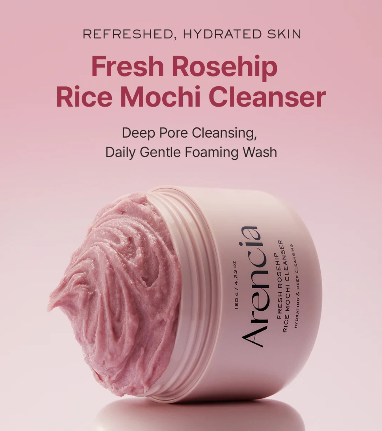 The Fresh Rosehip Mochi Cleanser from Arencia is a gentle foaming facial cleanser formulated to improve skin tone, texture and hydration, helping to soothe redness and minimize the appearance of whiteheads.