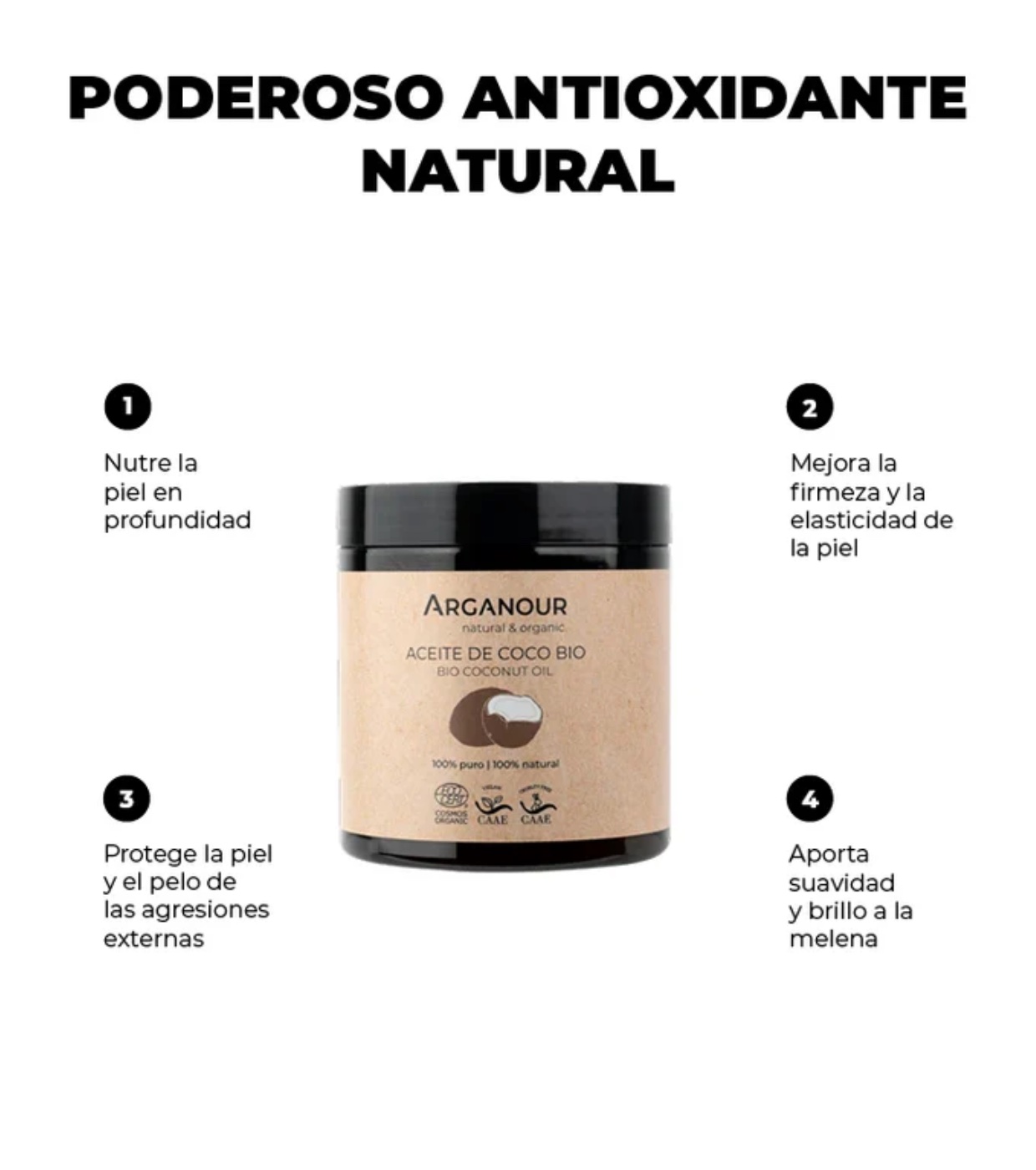 Arganour's 100% pure organic coconut oil is made from organically grown coconut.