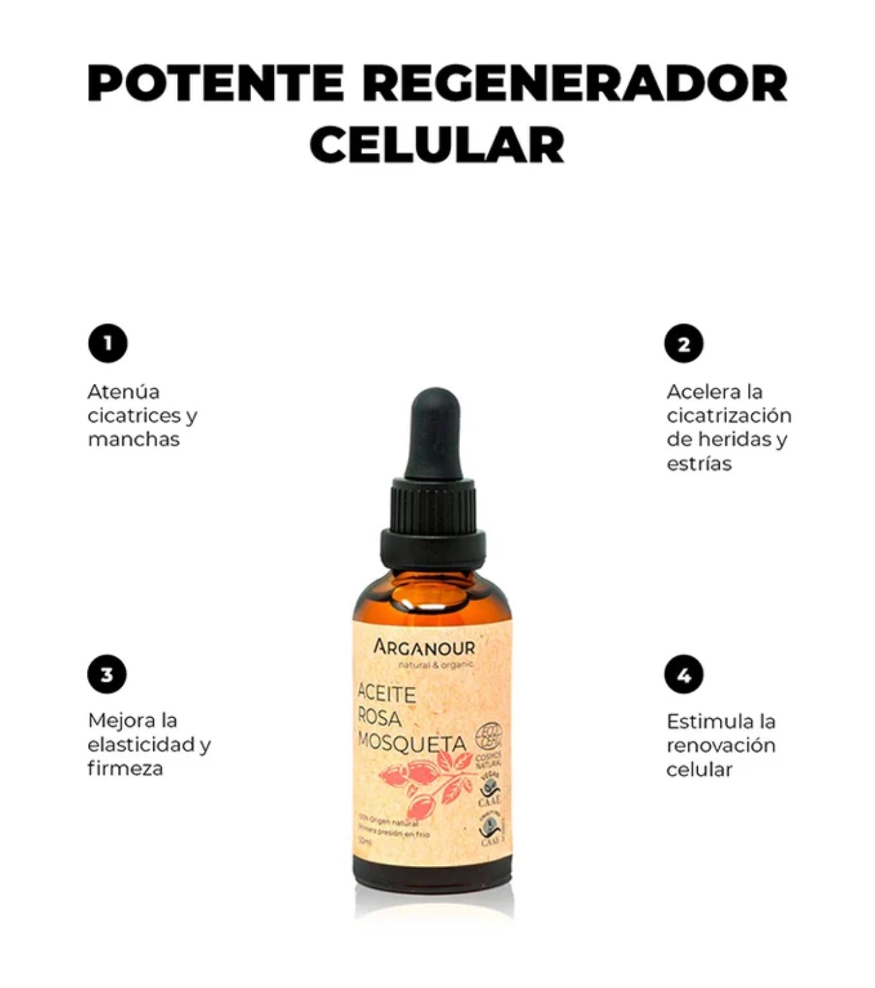 Arganour 100% pure rosehip oil is an oil natural origin and first cold pressing that has high concentrations of essential fatty acids, making it the perfect cosmetic to nourish and regenerate the skin.