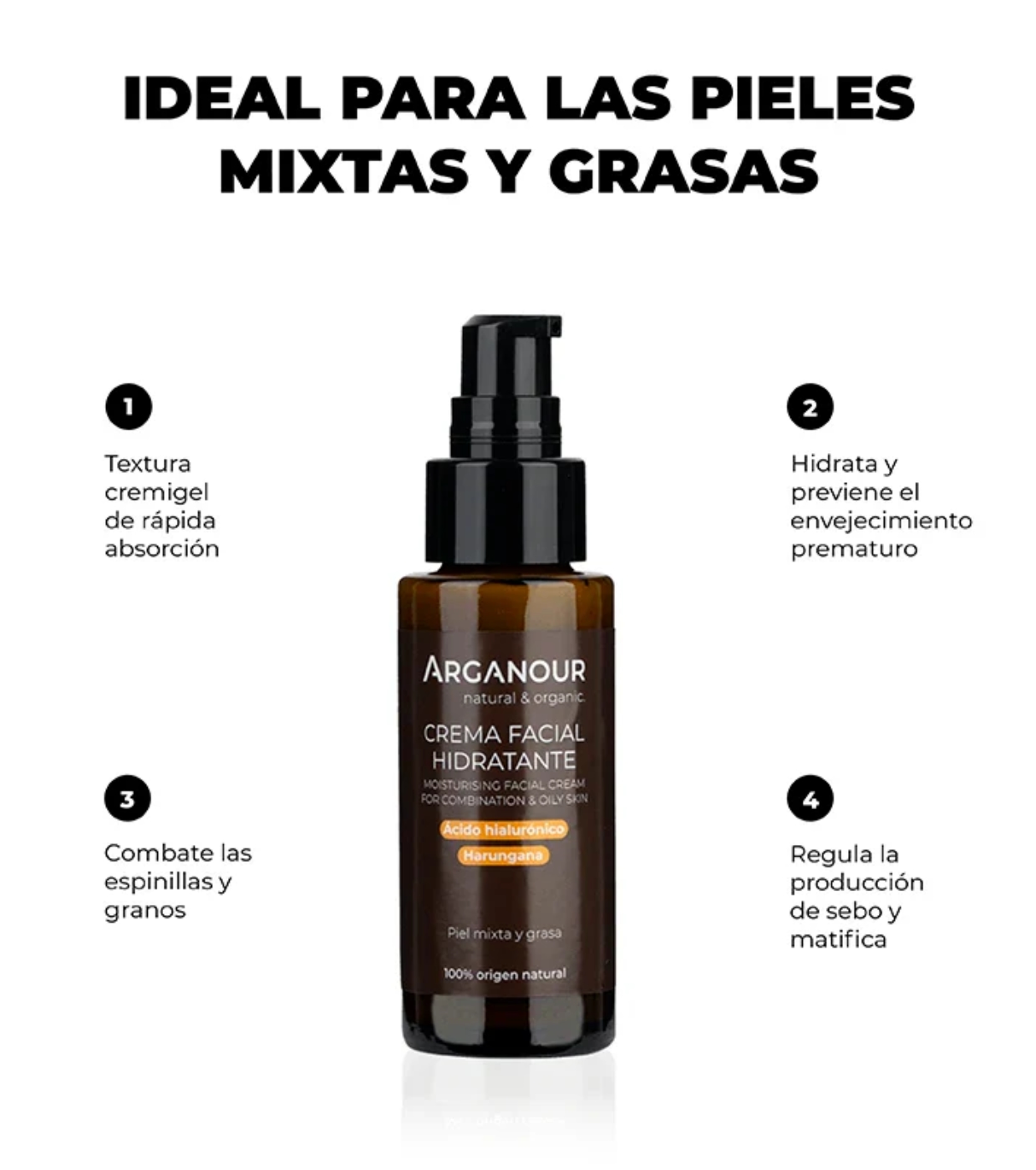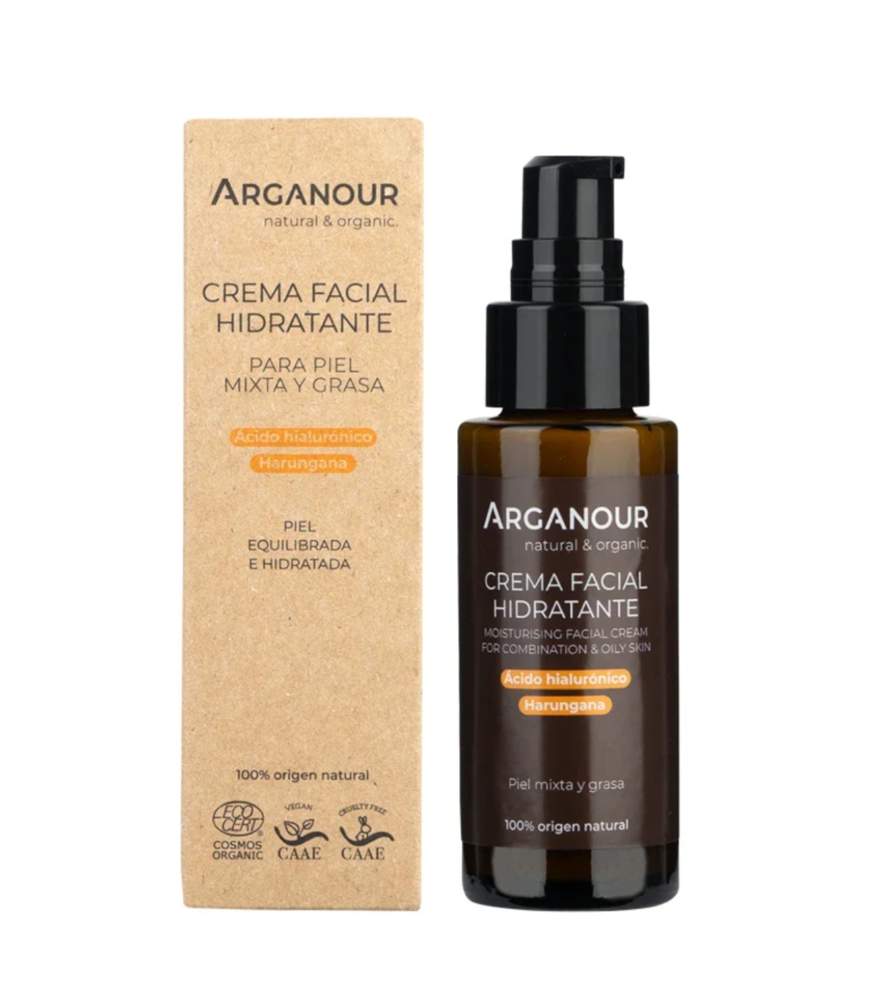 Arganour's combination and oily skin cream moisturizes, regulates sebum production, fights acne, and reduces shine, for a hydrated, smooth, and matte complexion.