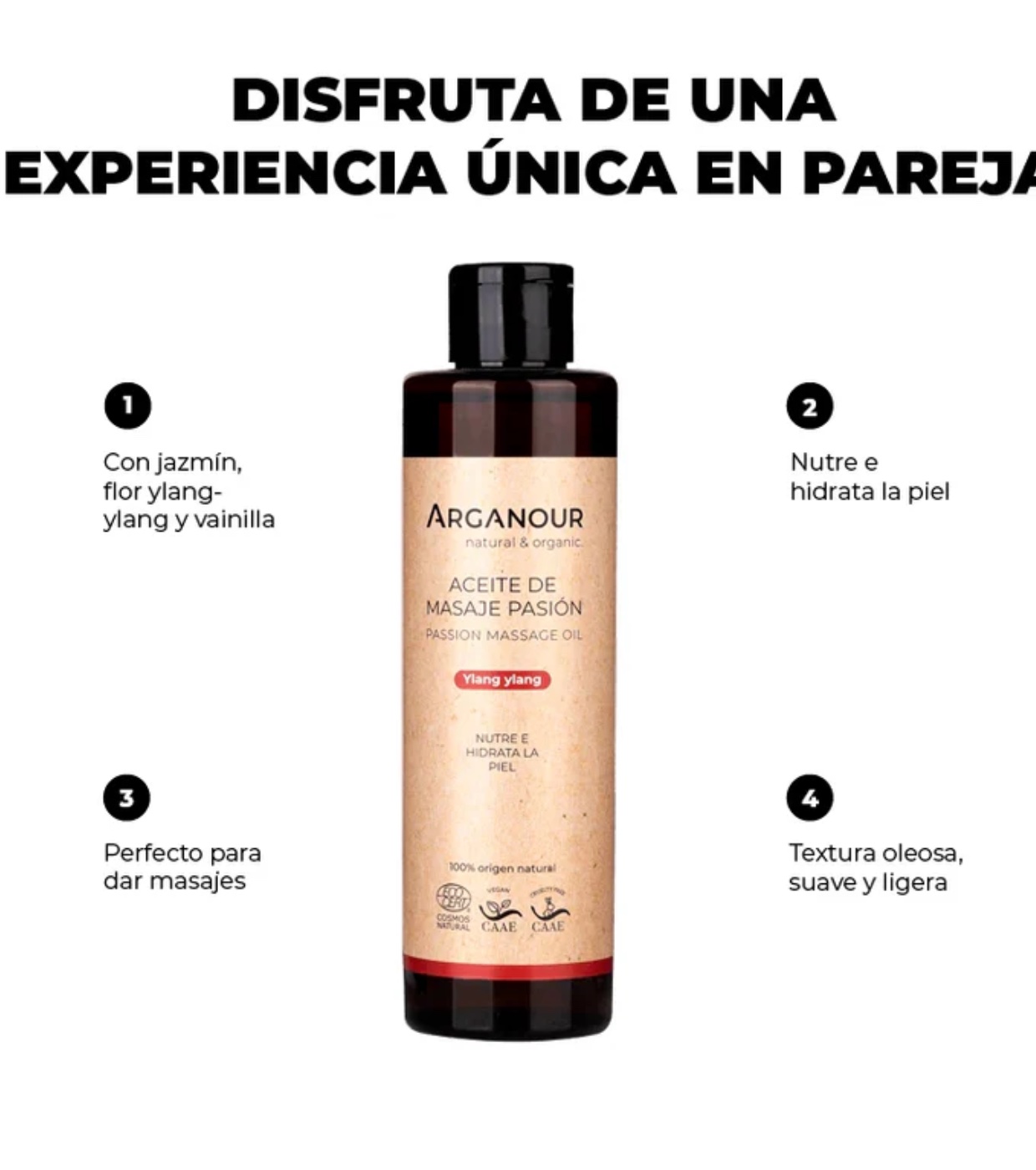 Enjoy a unique experience as a couple with Arganour's 100% natural passion massage oil . It will awaken all your senses and allow you to enjoy an unforgettable moment with your loved one.