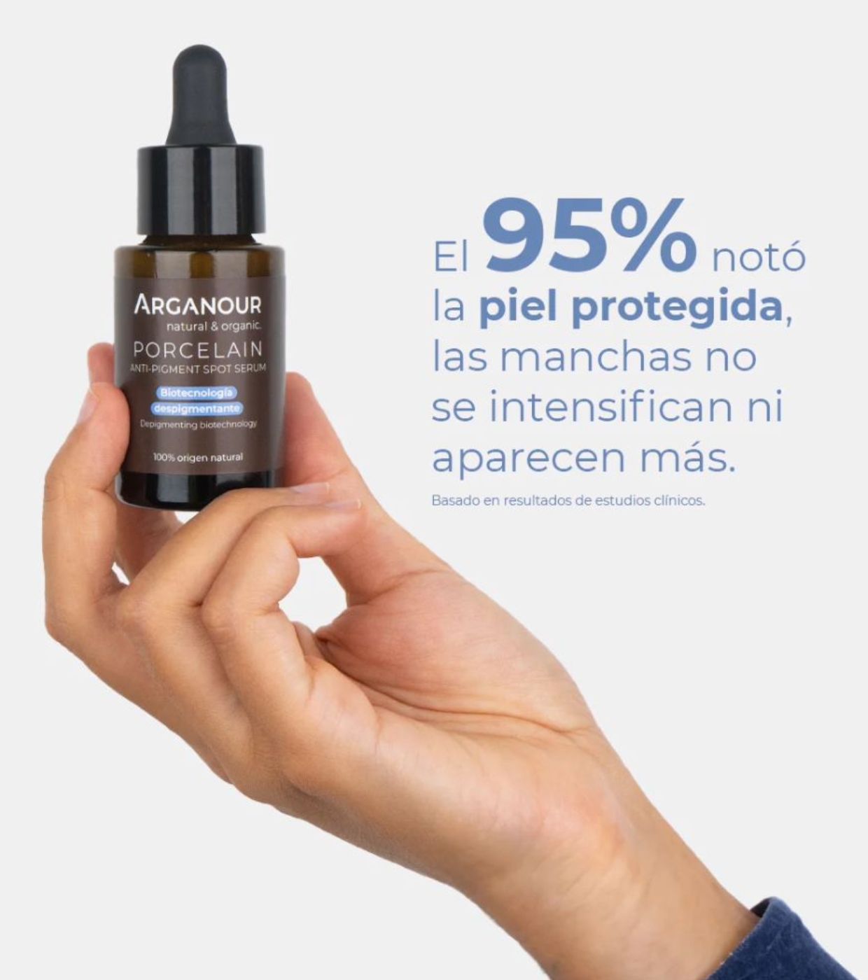 Your face will be more even and luminous with the Porcelain stain-removing serum. Formula with proven efficacy and visible results in 56 days: