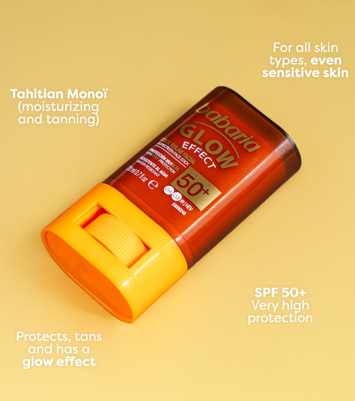 Enjoy the sun with the perfect balance of protection, care and beauty thanks to this facial sun stick SPF 50+ from Babaria with Monoi de Tahiti, niacinamide and shea butter.