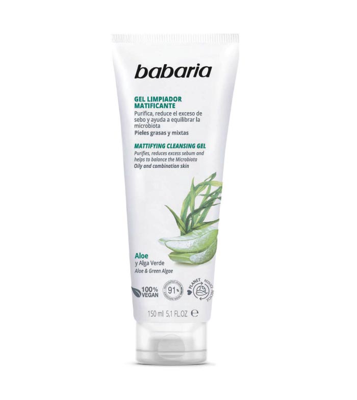 A mattifying cleansing gel formulated with aloe vera and green algae extract.