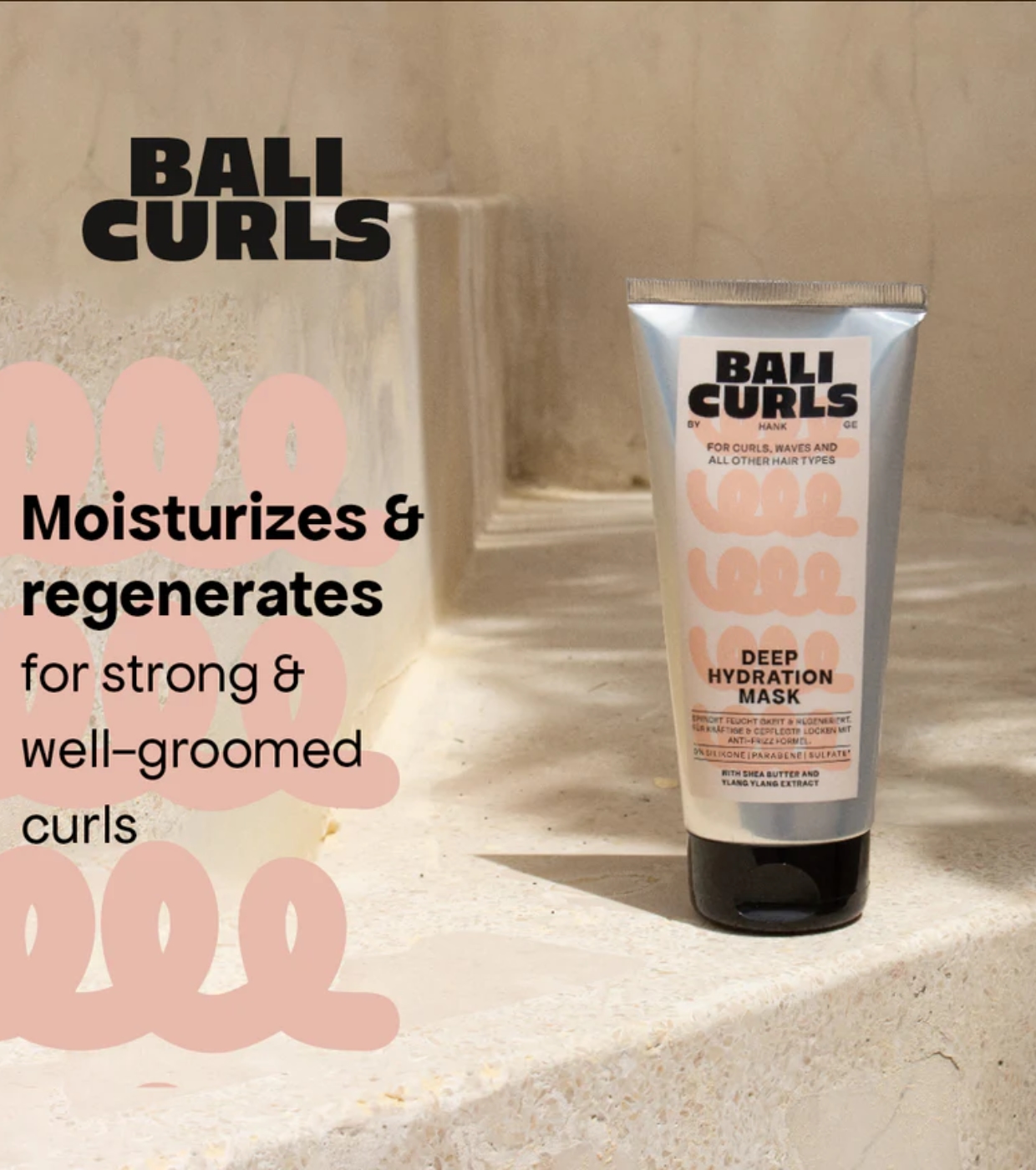 Bali Curls' deep repair curl mask features a vegan formula rich in anti-frizz actives that intensely moisturizes, strengthens and regenerates curly hair from within.
