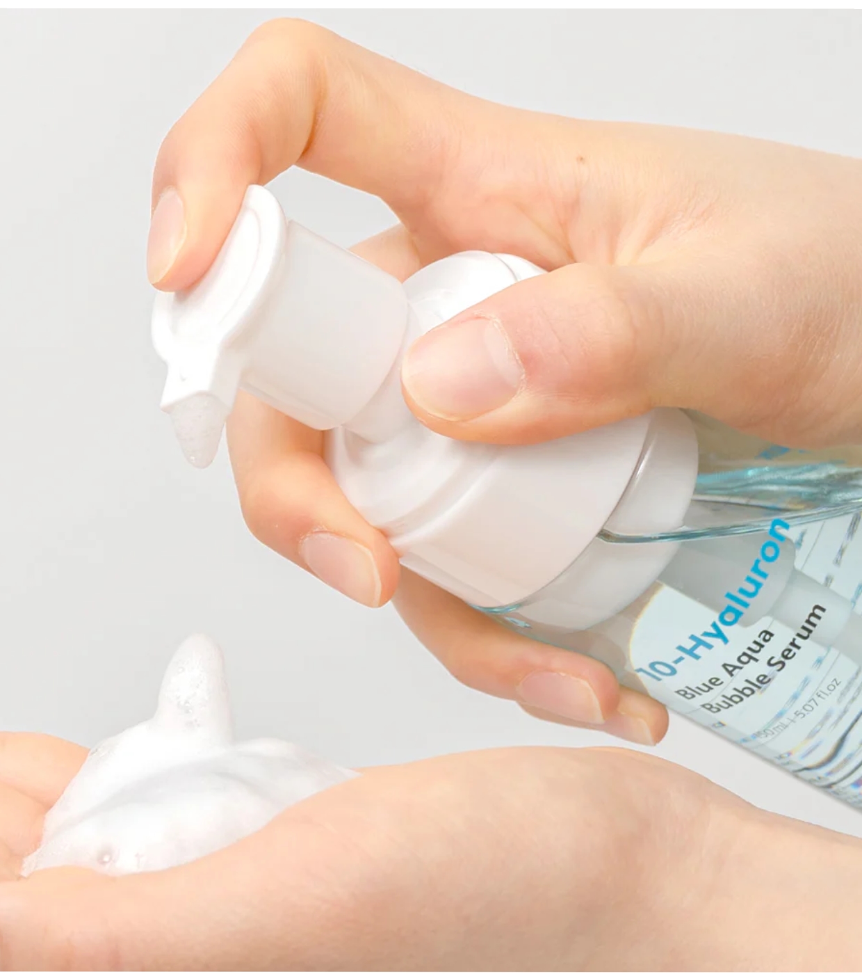 Brulab's 10-Hyaluron Blue Aqua Bubble Serum is an innovative foam-like treatment that provides intensive hydration, immediate soothing, and reinforcement of the skin barrier from the first application.