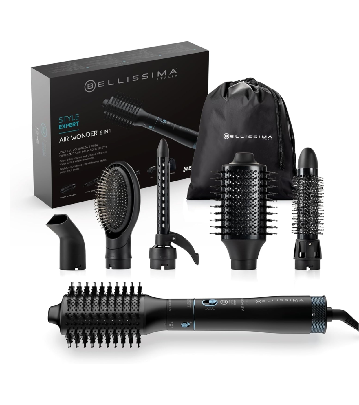 Bellissima Style Expert Air Wonder 6 in 1 is the multifunction hot air brush that allows you to dry, straighten, volumize, style waves and create curls with a single device.