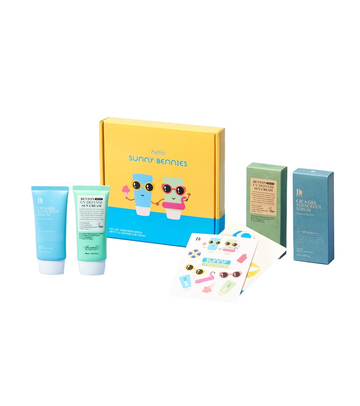 Benton Sun Duo: their best-selling sunscreens, as effective as they are comfortable on the skin, in a cute pack with stickers ideal for giving or self-gifting.