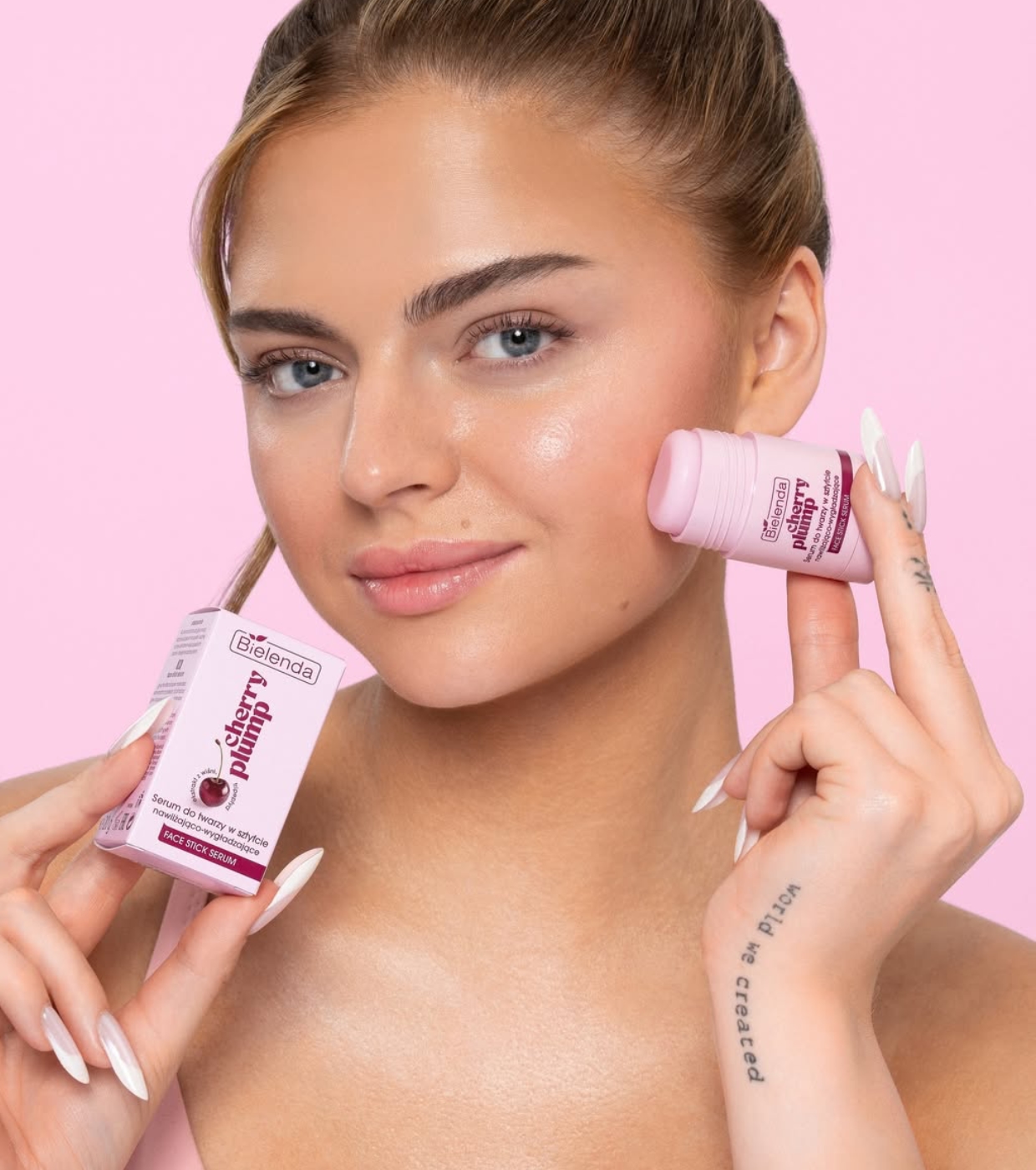 The Cherry Plump facial serum from Bielenda in stick format provides intense hydration, satin smoothness and a natural glow in a single step.