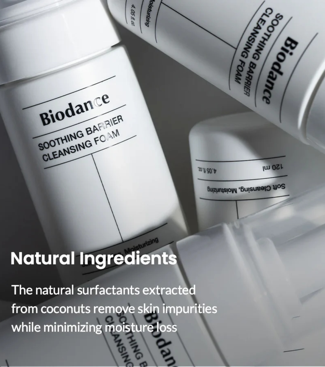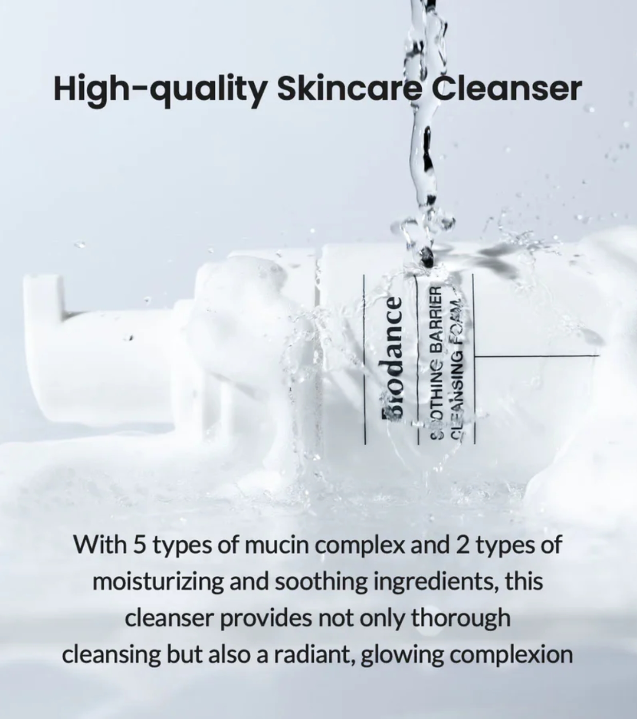 Deeply cleanse your skin without compromising its natural balance with Soothing Barrier Cleansing Foam's Biodance , a gentle yet highly effective foam that combines natural ingredients with advanced dermatological technology to deliver a soothing, hydrating and protective cleanse.