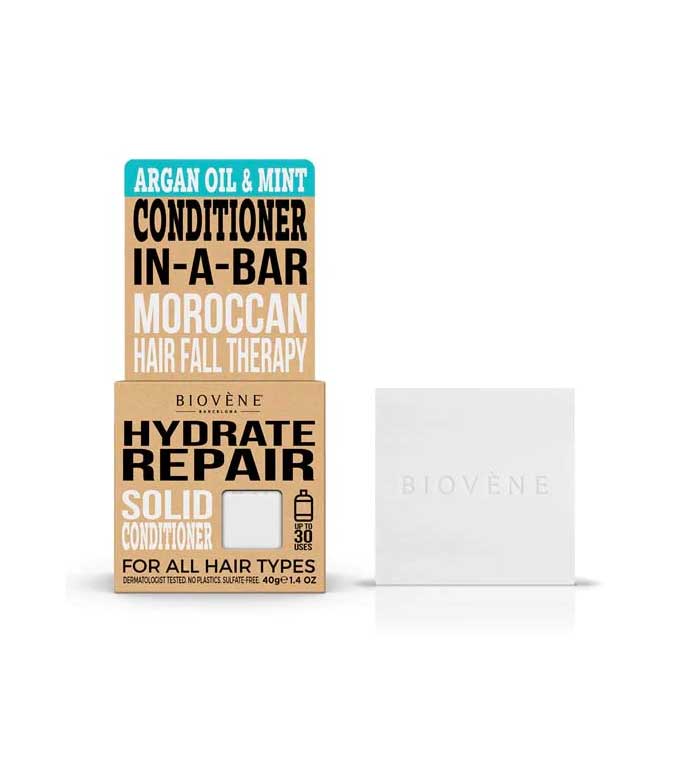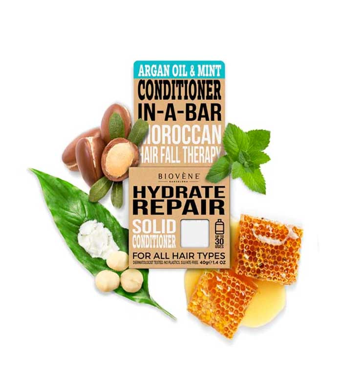 Replace the conditioner in a plastic bottle with a solid conditioner made with the highest quality natural ingredients like beeswax, shea butter, natural argan oil, macadamia oil and peppermint.