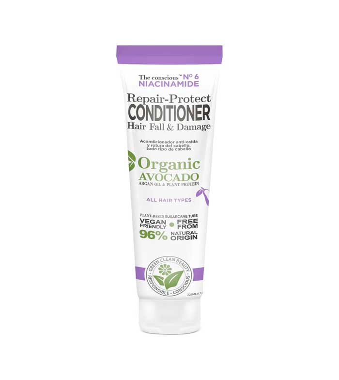 This daily use conditioner is suitable for all hair types, containing niacinamide, organic avocado, argan oil, and vegetable protein from rice and hemp to cleanse, hydrate, and help restore damaged hair.