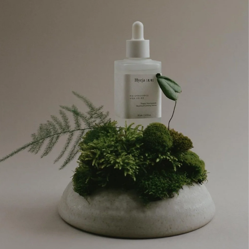 ✅ Niacinamide (in low concentrations) → soothes redness, improves texture, and strengthens the skin barrier. We recommend the soothing niacinamide serum from Hyeja.