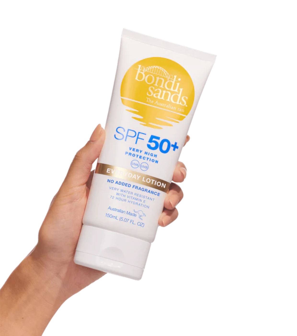Enjoy a day in the sun Bondi Sands style with Body Sunscreen Lotion 50+ Fragance Free sunscreen lotion .