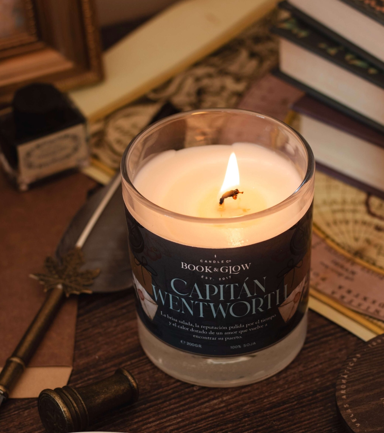 Discover the Capitán Wentworth soy candle from Book and Glow .