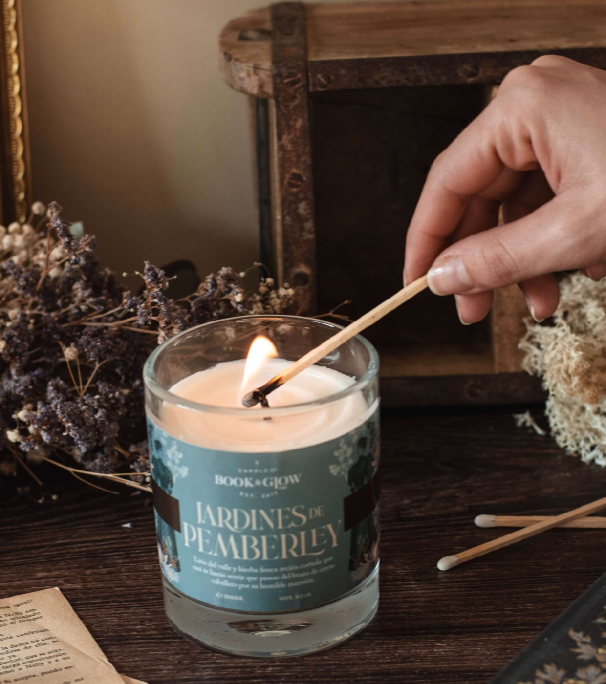 Perfect to remember a walk with Mr. Darcy through the gardens of his mansion, all gathered in a candle.