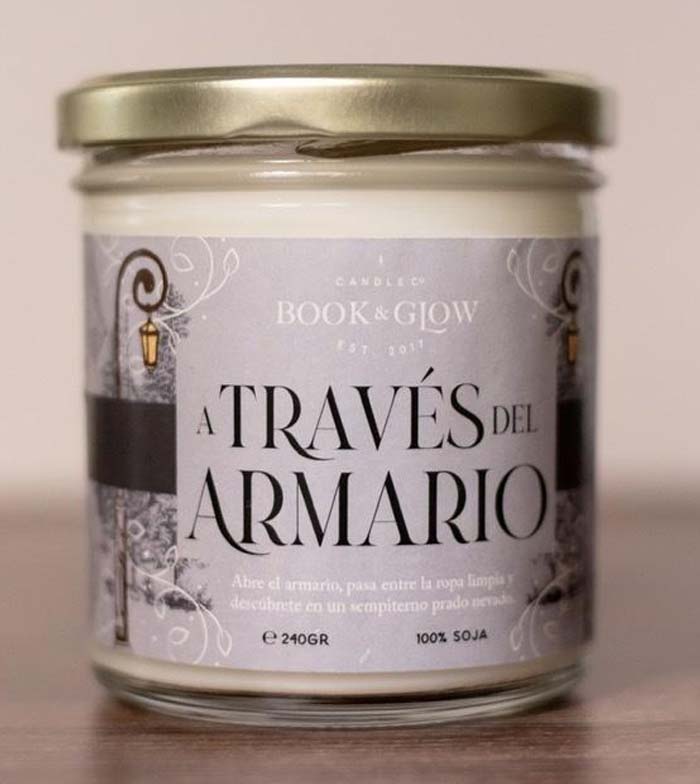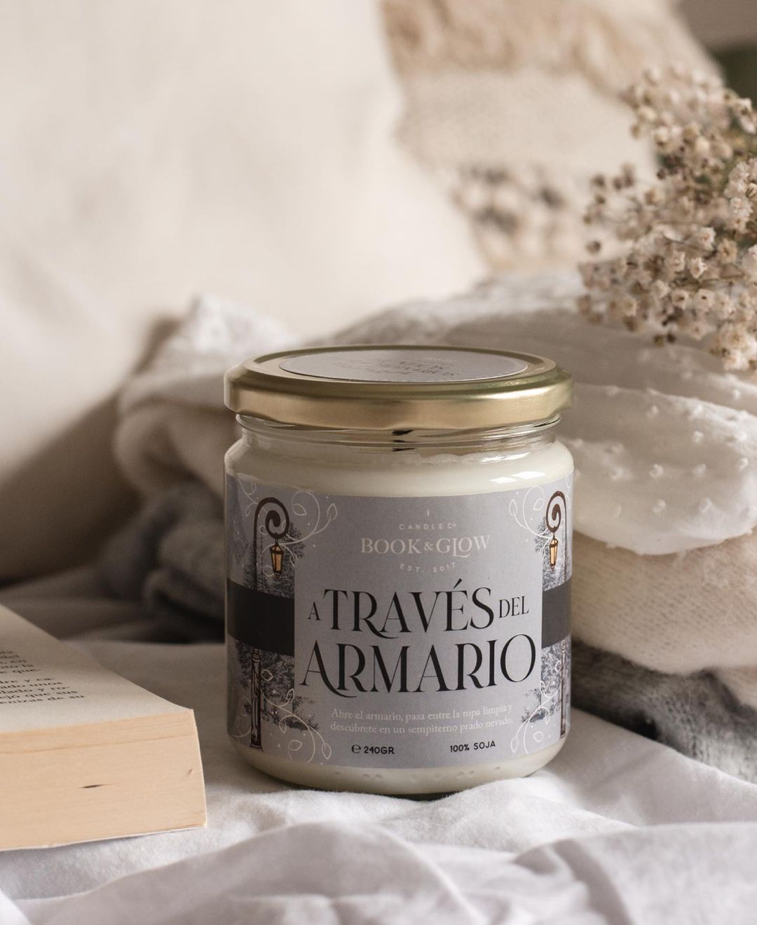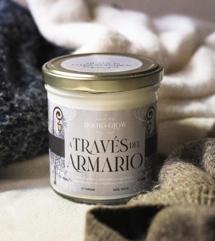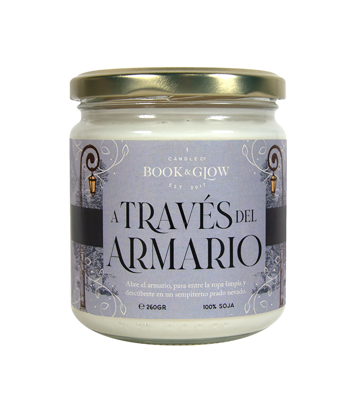Soy candle Extraordinary Worlds collection by Book and Glow. Through the closet.